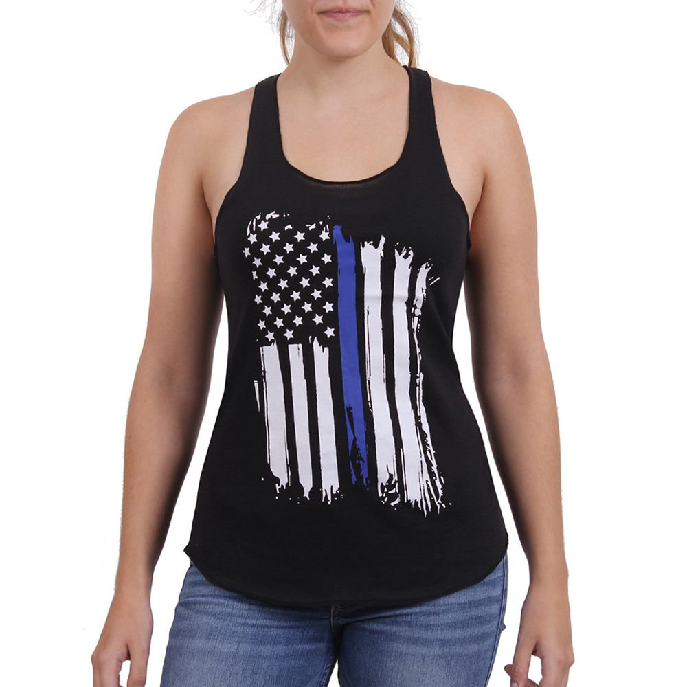 The Racerback Tank Top is made of a soft poly/cotton for comfort. A Thin Blue Line Flag is featured on the front, to show respect and support for Police and Law Enforcement Officials. This versatile tank top can be used as activewear or everyday wear and is pre-washed for a vintage look.