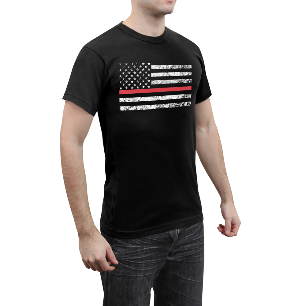 This Ultra Force Thin Red Line Flag T-Shirt represents camaraderie and sacrifice of firefighters and first responders to fires and disasters.