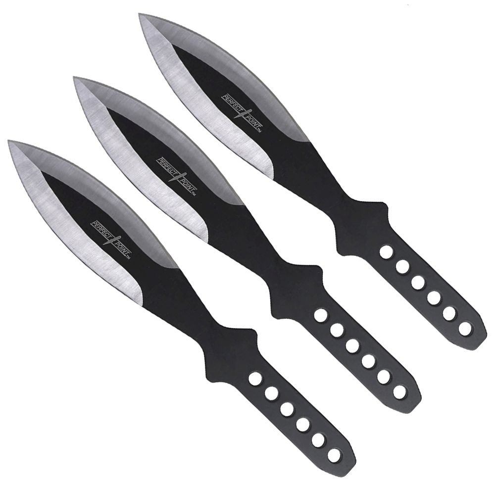 The Perfect Point PP-114-3SB Throwing Knife Set includes three expertly balanced throwing knives, each with a total length of 9 inches. Designed for accuracy and durability, these knives feature a sleek, aerodynamic build for optimal throwing performance. Ideal for both beginners and experienced throwers, the set offers precision and reliability, making it a great addition to any collection or training regimen.
