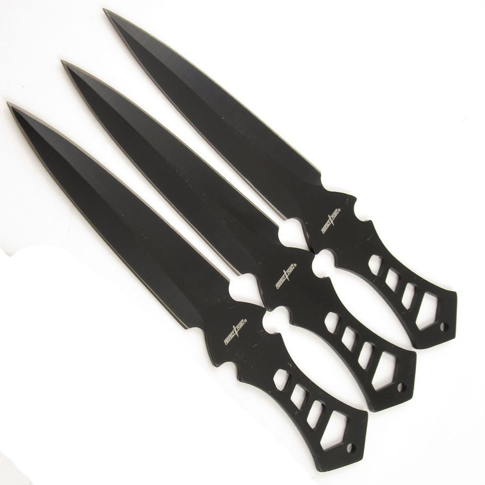 These nicely balanced throwing knives are some of the most impressive looking on the market today. All three feature impressive angles and skeletonized handle cutouts.