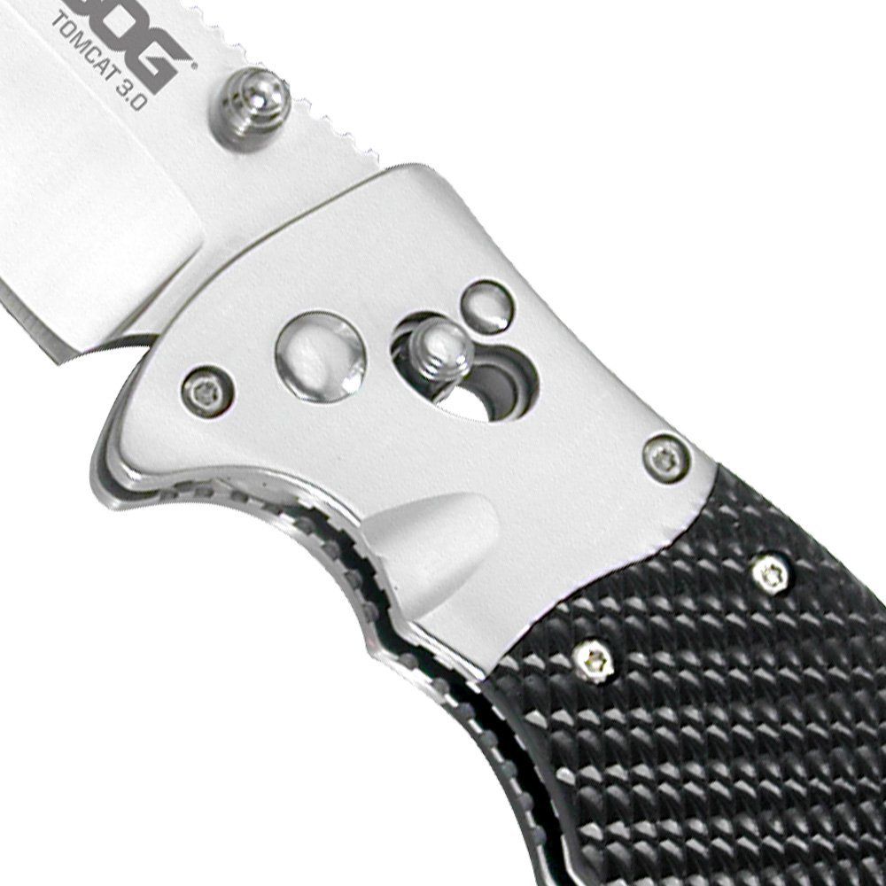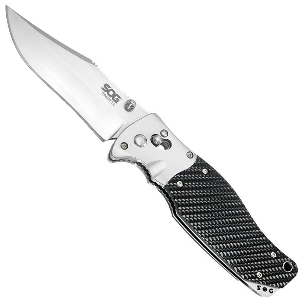 SOG's first folding knife, the first generation TomCat, set the standard for the large format lockback folders and won the award for Overall Knife of the Year in 1988. Today the redesigned TomCat 3.0 will still win a place in your hand. Like a modern day tank, this heavy duty folder is big time armament but has the finesse to turn on a dime. The TomCat 3.0 features our Arc-Lock that combines speed and safety in controlling the big 3.75-inch blade. Surprisingly light for its size, the TomCat 3.0 is also quick and smooth to deploy with either hand using the double thumb studs. The VG-10 blade rotates effortlessly to lock up in SOG’s Arc-Lock. Tested at over 1000 lbs. of force at the lock, the Arc-Lock is SOG’s strongest lock. The handle is made of stainless steel and textured Kraton which make it lightweight and easy to hold.