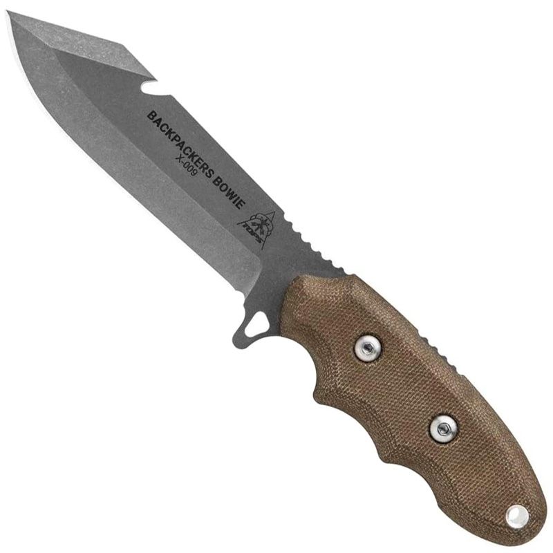 Bowie knives have long been popular amongst knife enthusiasts for good reason. The characteristic clip point blades provide for versatility in a wide range of users. However, most Bowie knives are on the larger side. There's nothing wrong with that and those knives have their place in every man's kit. But the goal with the Backpacker's Bowie was to make a shorter version that even a backpacker would carry (every ounce counts).