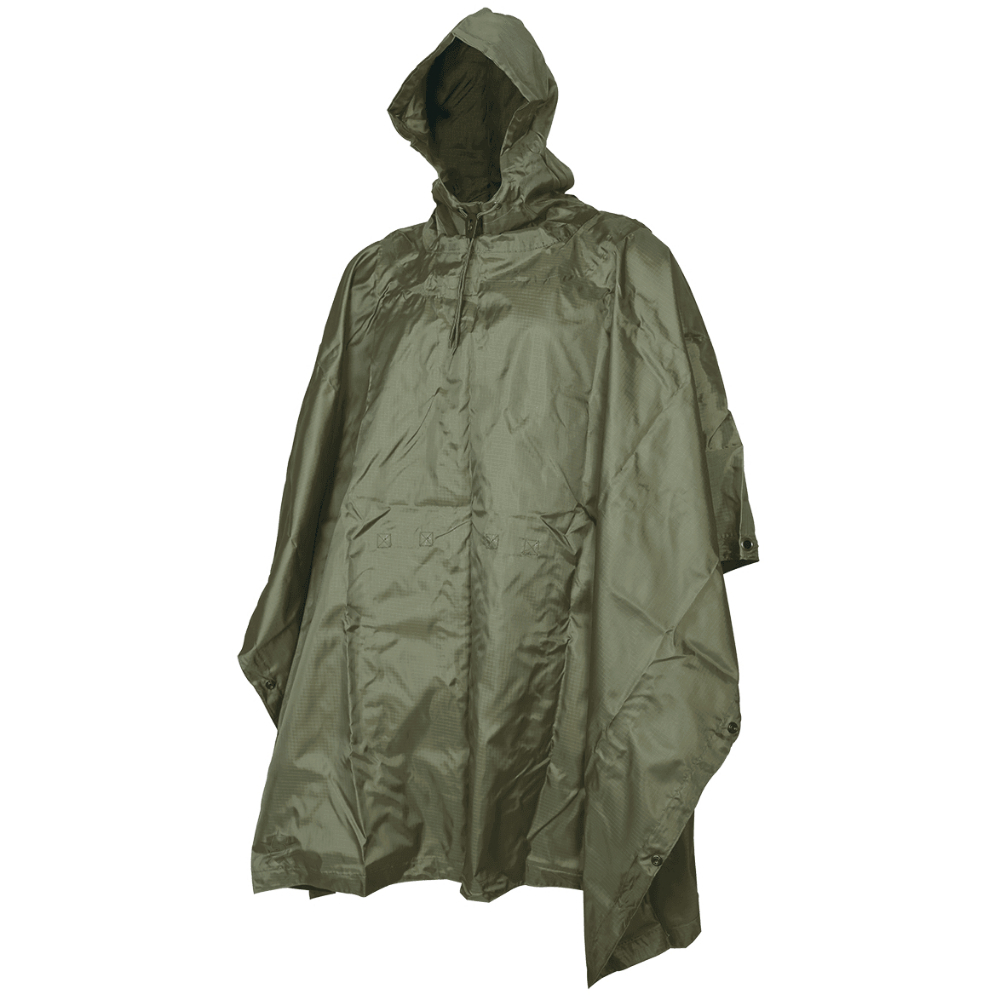 These 5ive Star Gear® GI Spec Military Rip-Stop Ponchos are the ideal military style poncho that features a heavyweight, durable waterproof rip-stop material. The poncho has built-in snaps on each side for increased protection from the elements along with grommets in each corner that allows for use as an emergency shelter. Can also be used as a ground cover and comes with a stuff sack for storage.;
