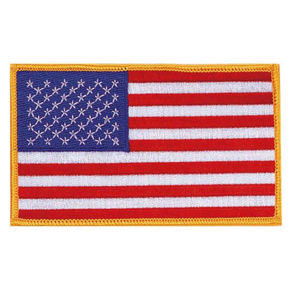 The Ultra Force brings you Jumbo US Flag Patch. This heavy duty U S national flag patch now comes with gold embroidered border. The Ultra Force craftsmen use most high standard threads for the embroidery purpose. You can either sew them on your garments or iron them with the backside down for superior adherence. This is a washable patch with a dimension of 3 inches x 5 inches. It is a large sized patch. This patch skilfully replicates the national flag design of the United States of America containing red (7) and white (6) consecutive stripes and white starlets on blue setting.