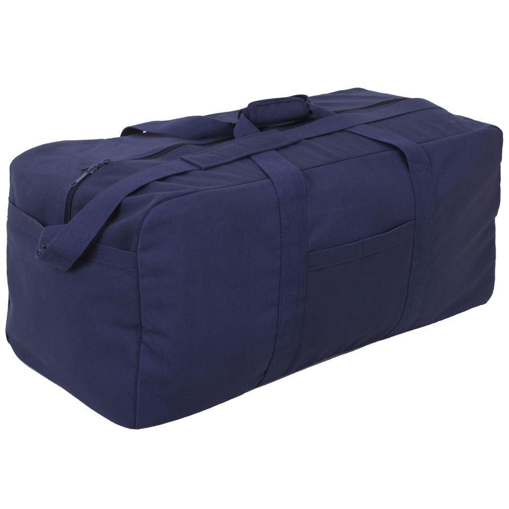Canvas Jumbo Cargo Bag Features Water-Resistant Heavyweight Canvas, Brass Plated Hardware, Heavyweight Webbing Fully Adjustable Shoulder Strap And 2 Open Top Side Pockets.