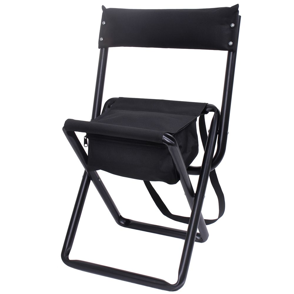 Deluxe Folding Stool with Back & Pouch is the perfect on-the-go chair, ideal for sporting events, hunting, camping and more. The folding stool features a storage pouch beneath the seat as well as a sturdy back to lean against, both made of a durable polyester cloth. Our deluxe camping stool is constructed with a sturdy metal frame and can be folded up with a convenient carry strap for on-the-go. Stool weight limit is 100 kgs/220 lbs.