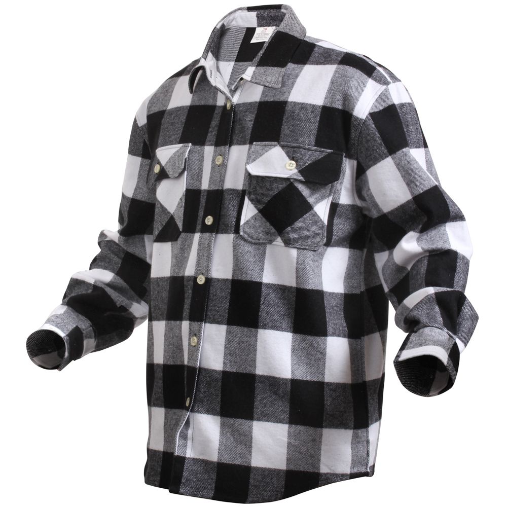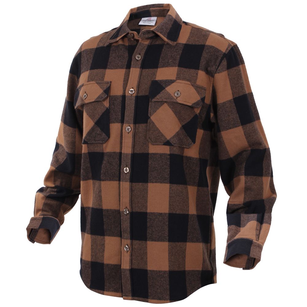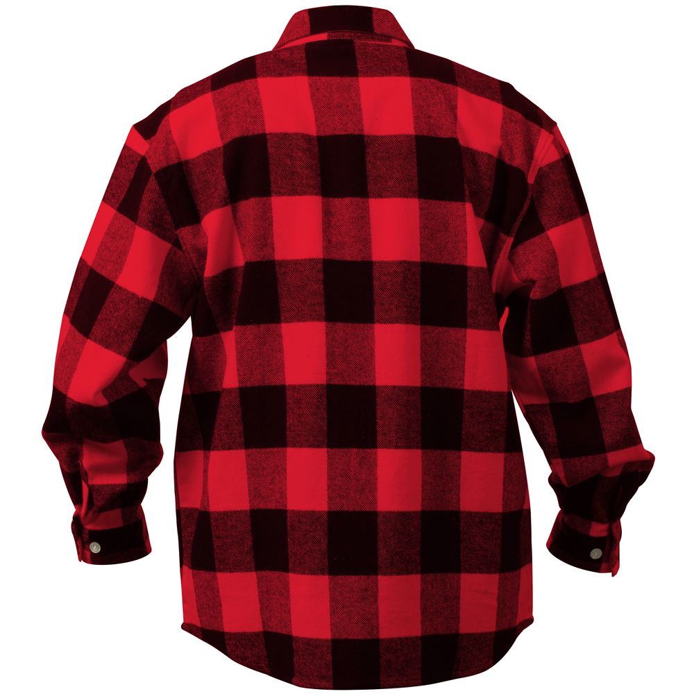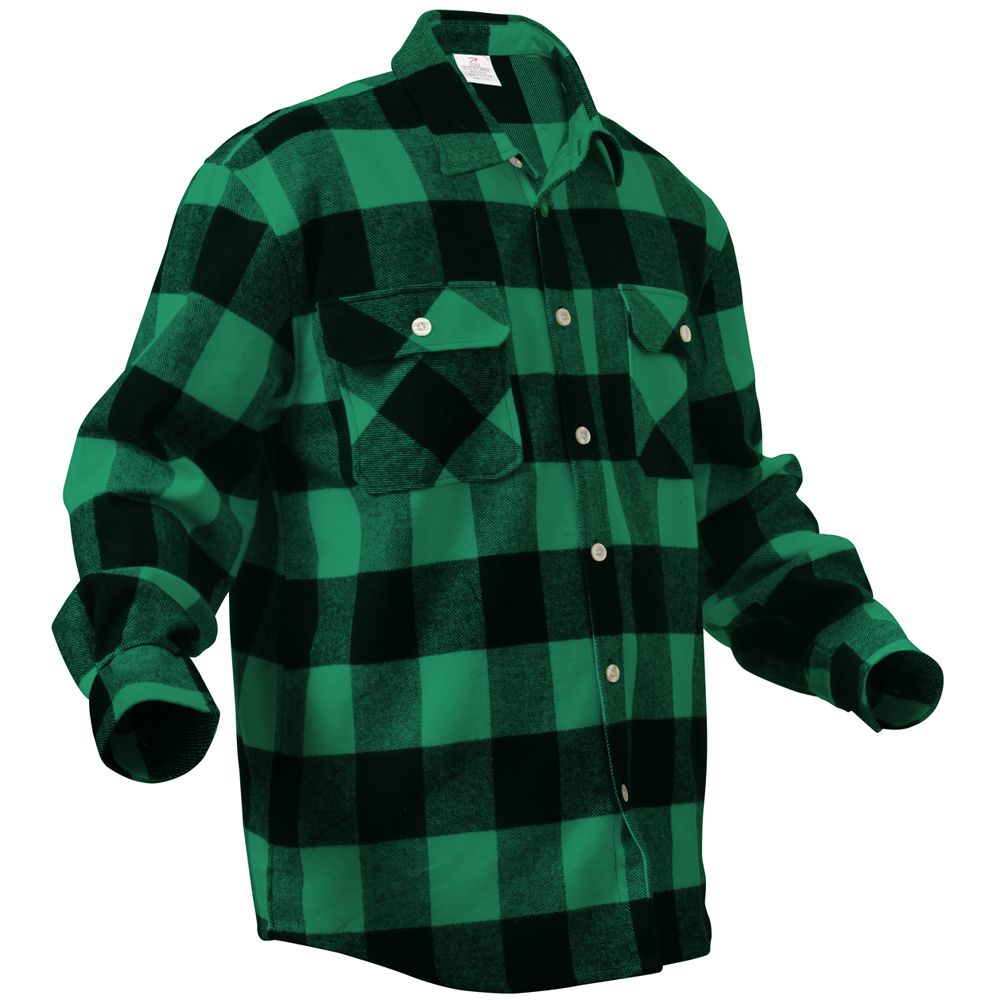 Extra Heavyweight Buffalo Plaid Flannel Shirts are a 100% cotton heavyweight flannel that provides unbelievable warmth and comfort. The plaid shirt features a button up front and two button flap pockets, a six button closure down the center of the chest, and a button on each wrist cuff for comfortable wearing.