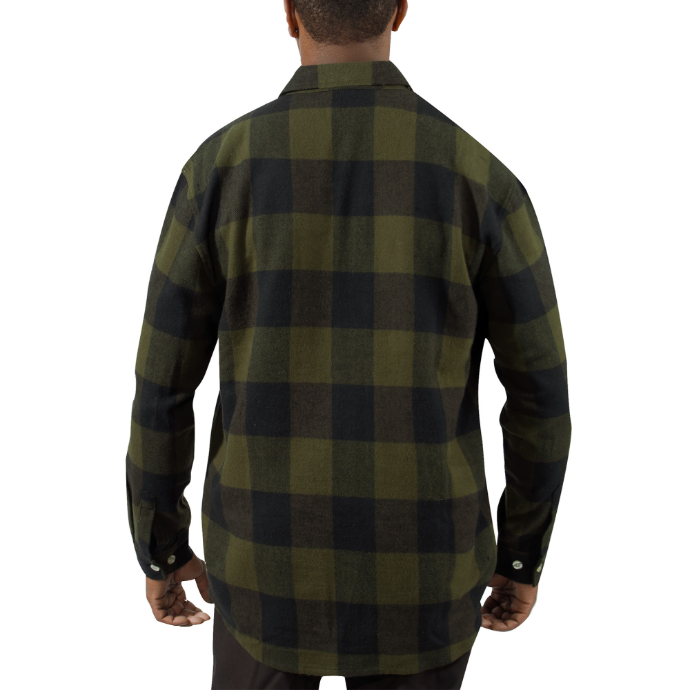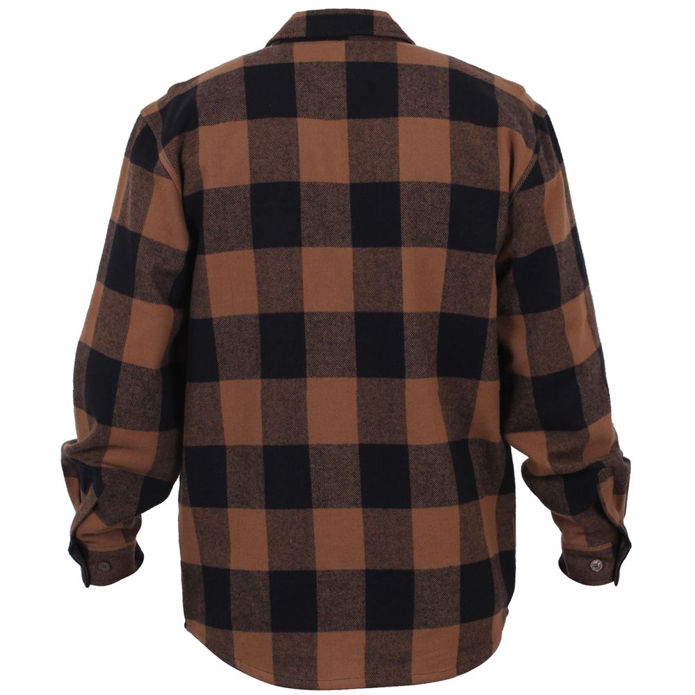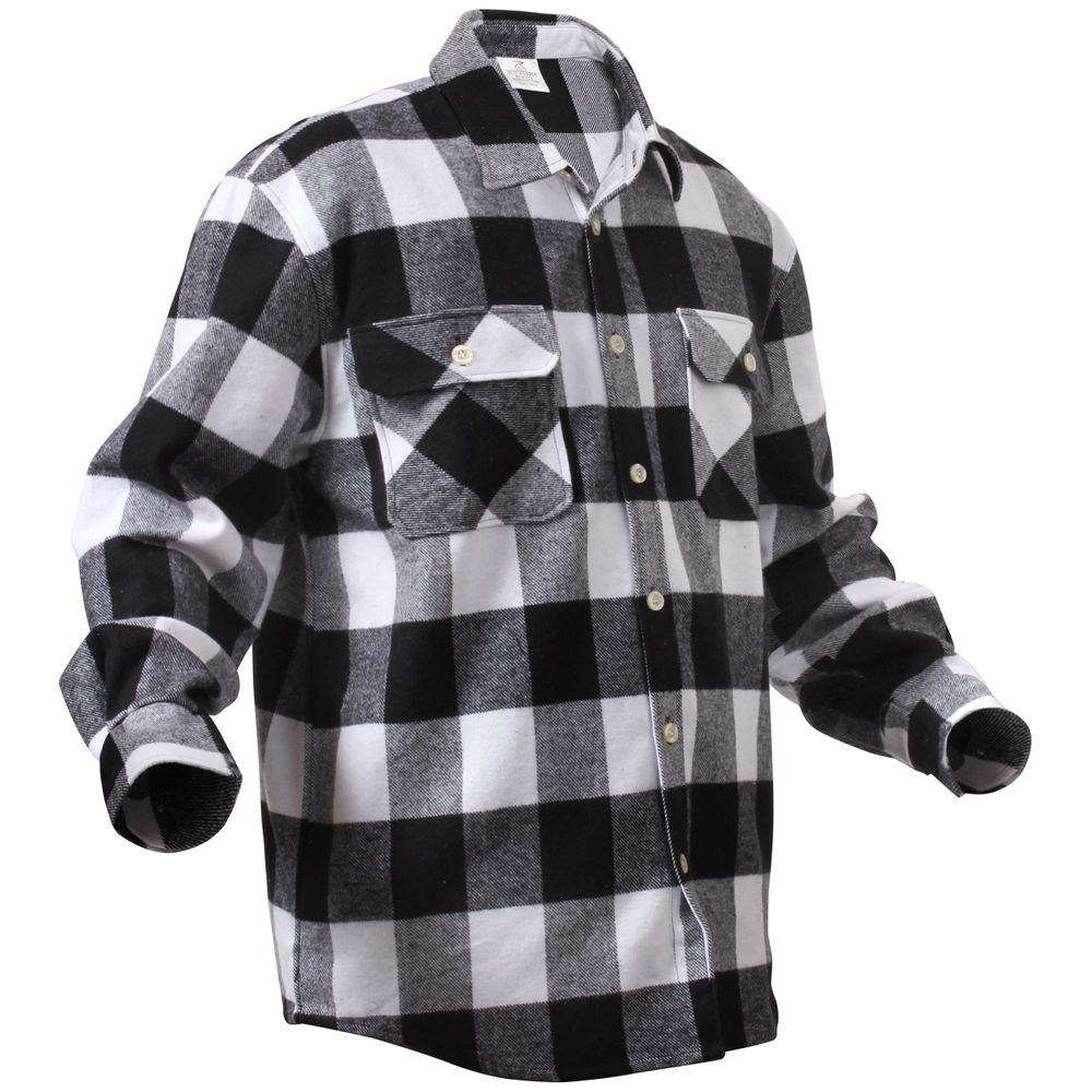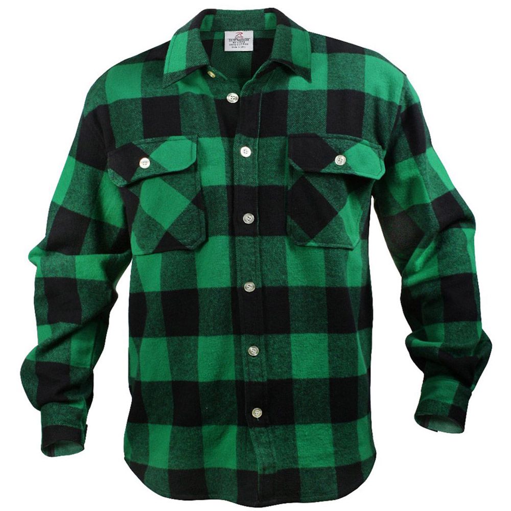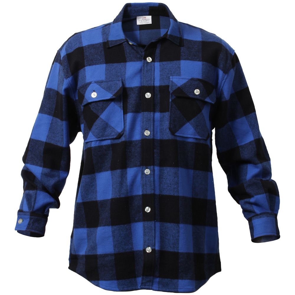 Extra Heavyweight Buffalo Plaid Flannel Shirts are a 100% cotton heavyweight flannel that provides unbelievable warmth and comfort. The plaid shirt features a button up front and two button flap pockets, a six button closure down the center of the chest, and a button on each wrist cuff for comfortable wearing.