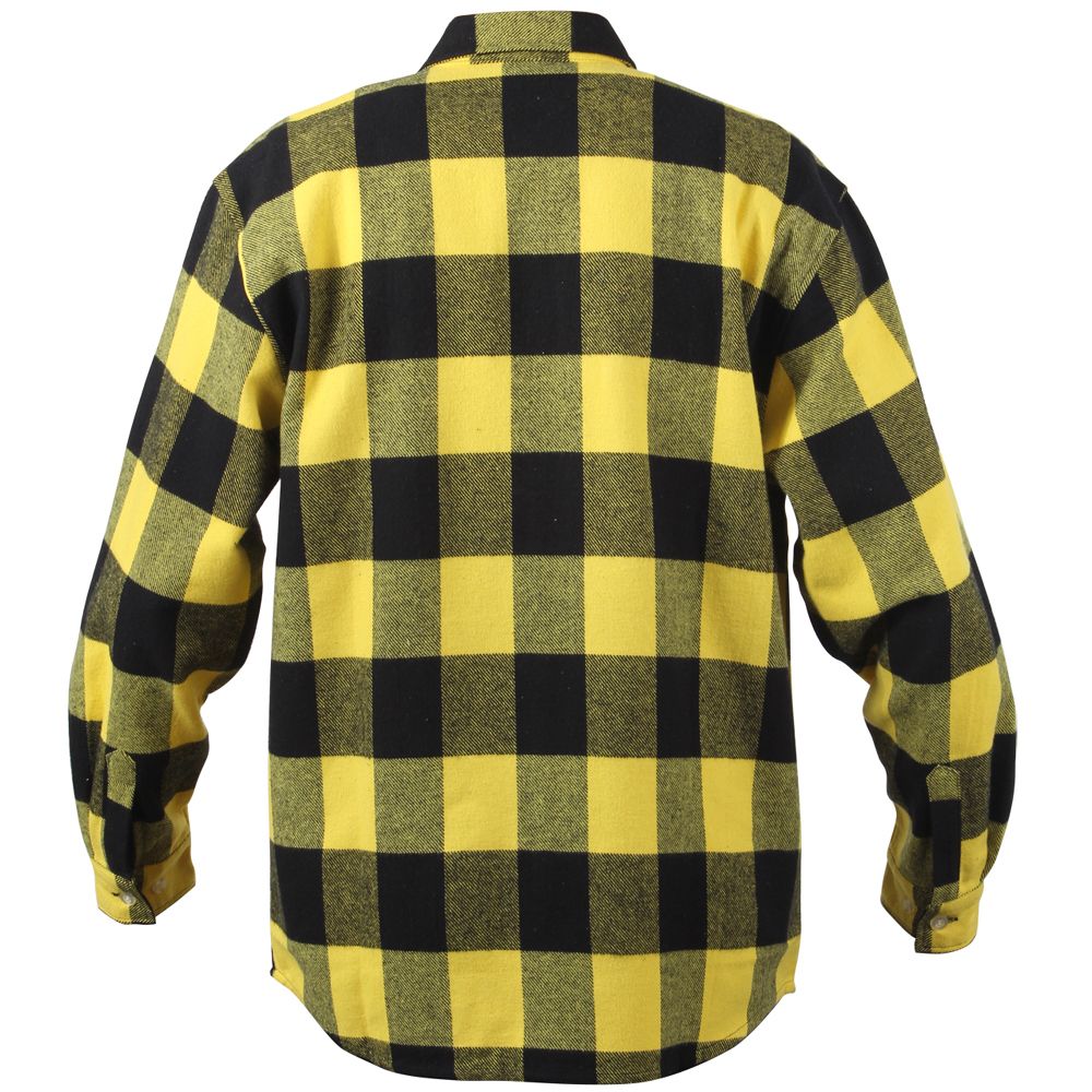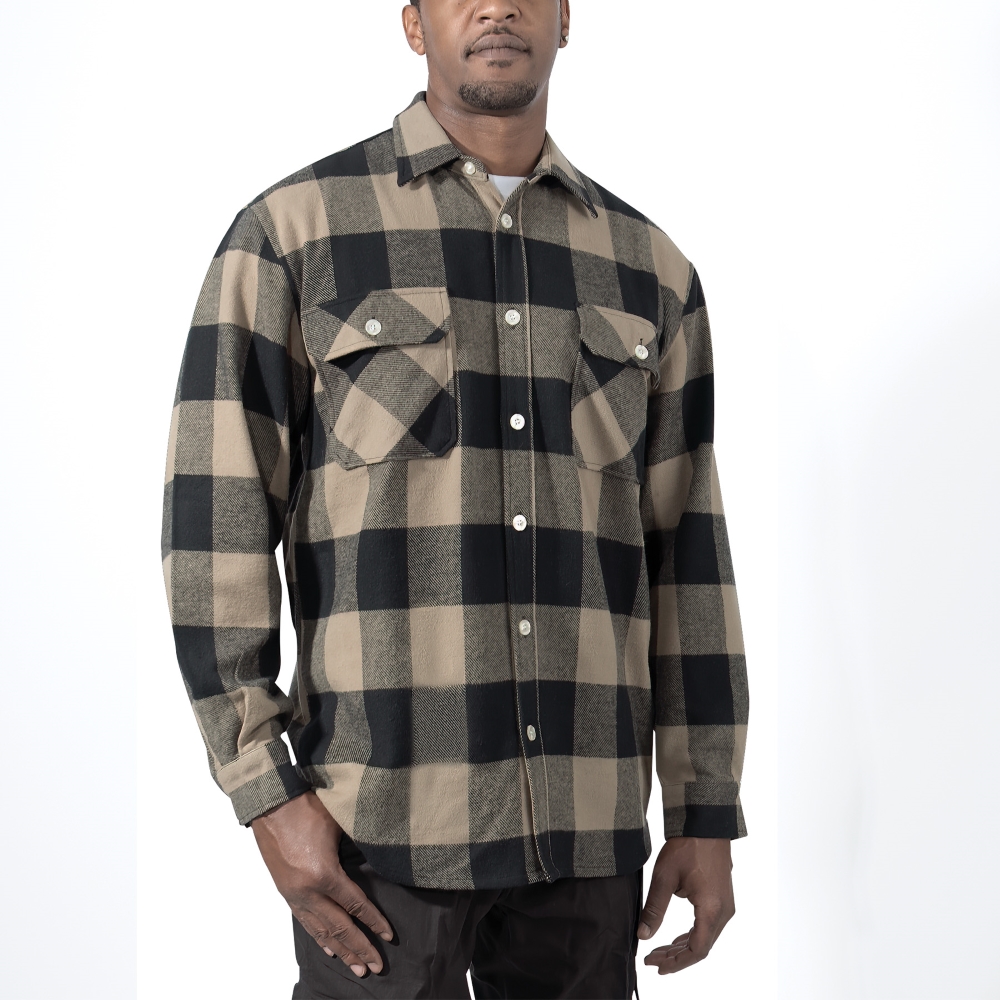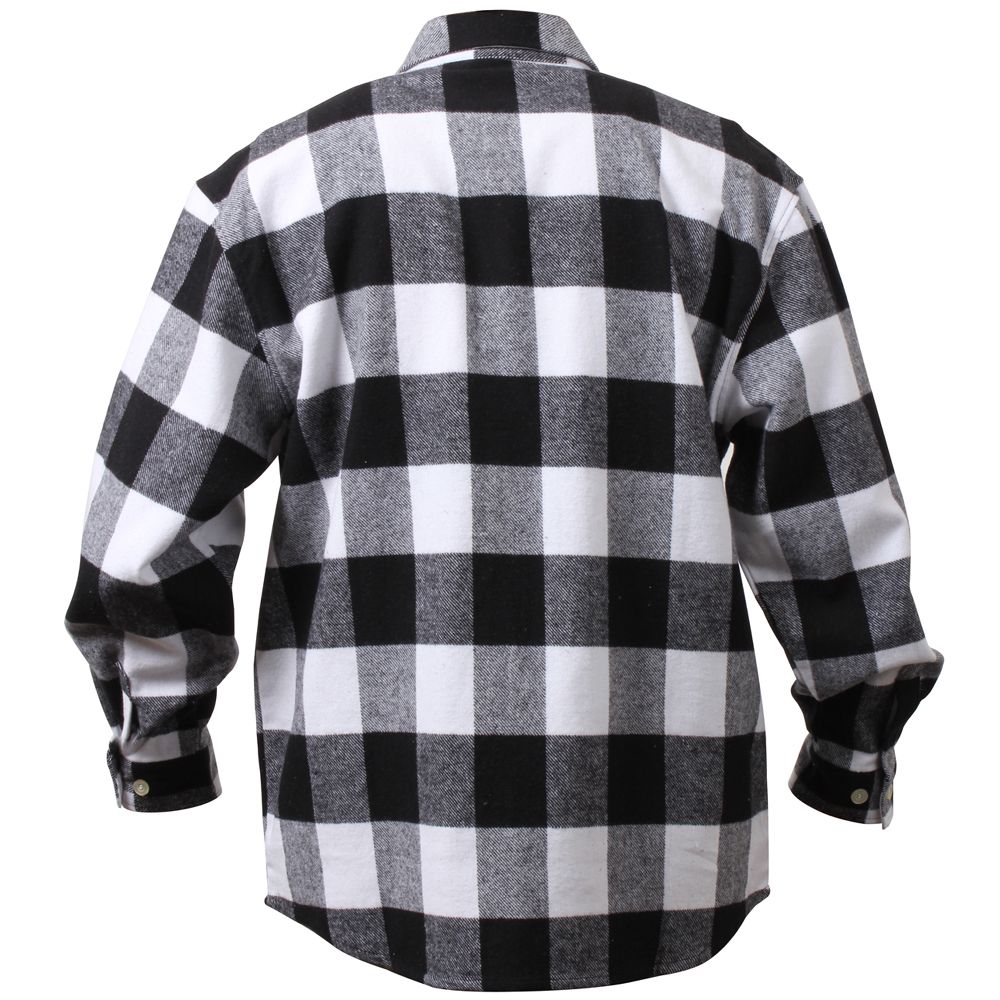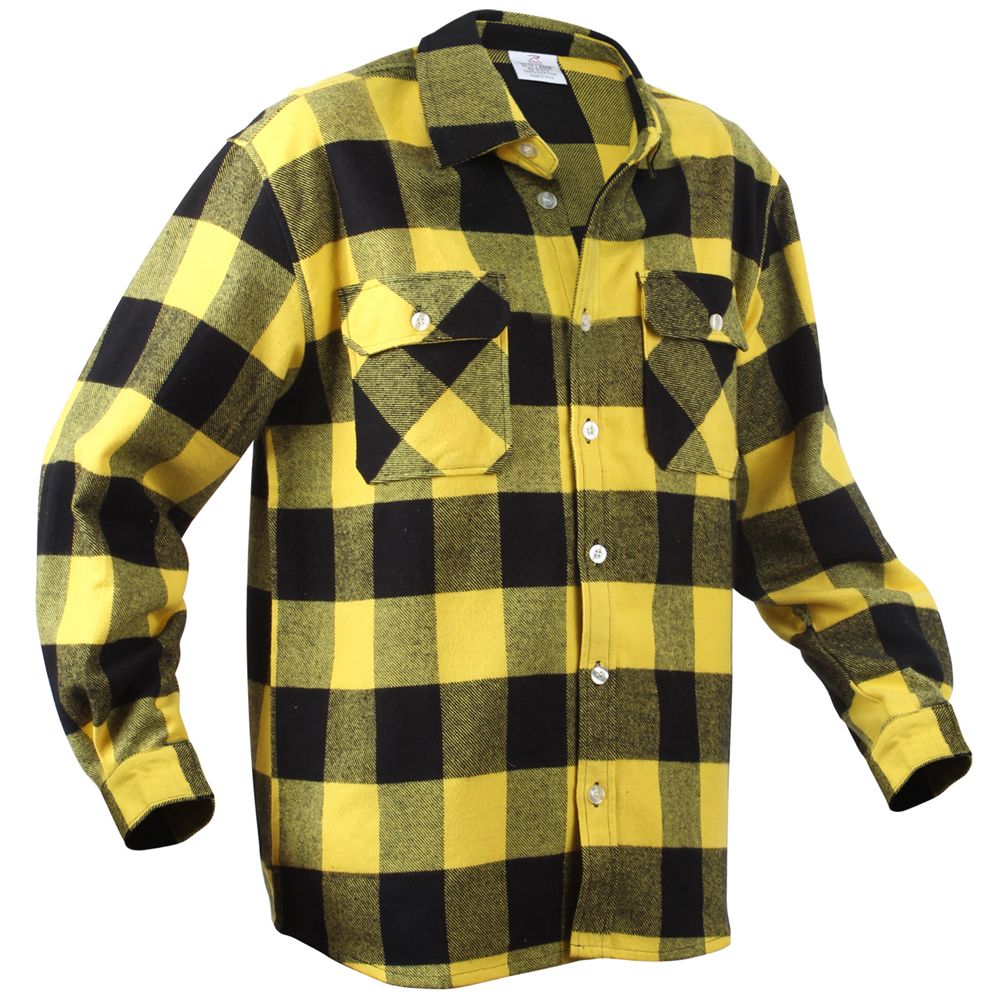 Extra Heavyweight Buffalo Plaid Flannel Shirts are a 100% cotton heavyweight flannel that provides unbelievable warmth and comfort. The plaid shirt features a button up front and two button flap pockets, a six button closure down the center of the chest, and a button on each wrist cuff for comfortable wearing.