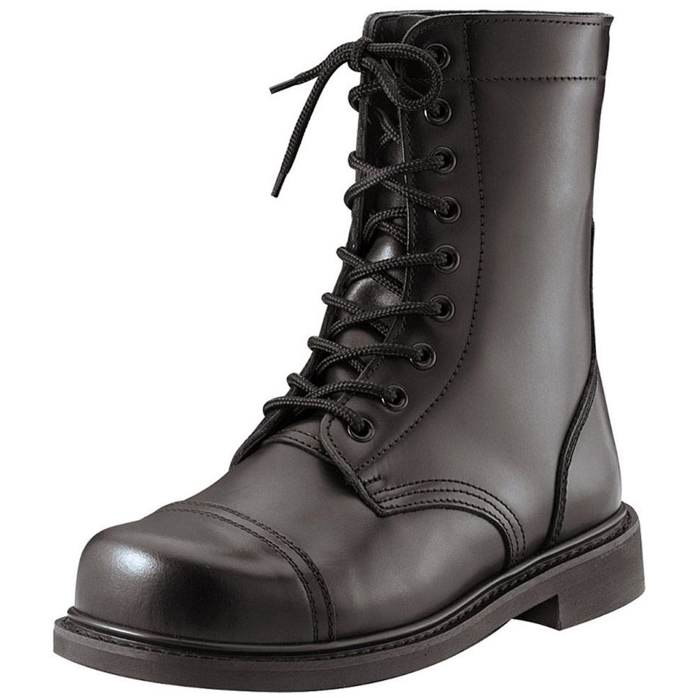 Combat boot with a sturdy steel toe comes in a variety of different sizes ranging between 5 and 14. This GI Style combat boot comes with Goodyear Welt packaged with care. The upper in this well designed boot is made of black leather, top grain cowhide. These boots are well insulated and water proof and are made especially for rough use. Steel toe footwear are popularly used by military personnel and are available at affordable prices. The midsole is made of high quality poly urethane material and offers high level of comfort for the user. The steel toe construction makes it ideal for use in extremely hot desert weather conditions.
