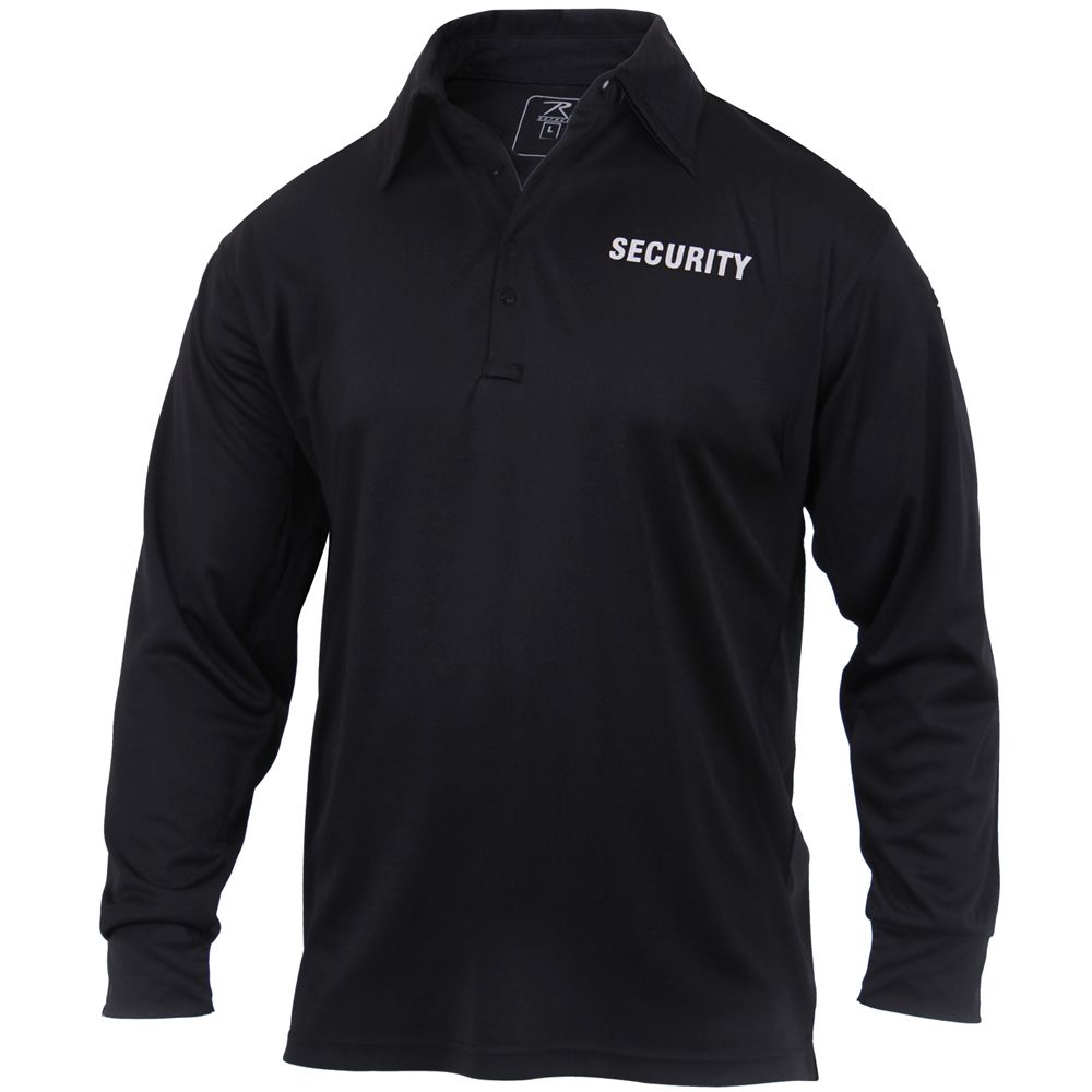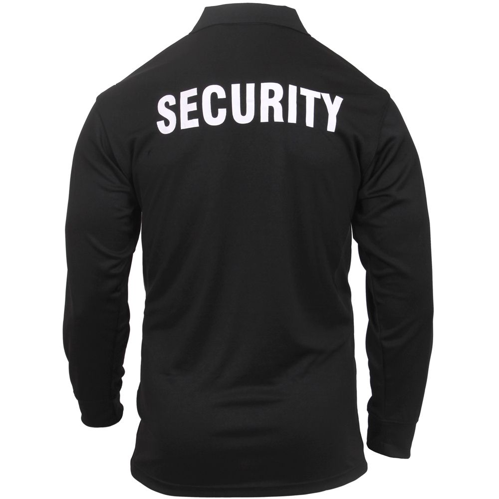Moisture Wicking Long Sleeve Security Polo will wick away moisture, keeping the body dry and comfortable in the most heated situations. The Security Polo is 100% Polyester for a breathable fit and is a full-size cut with a classic 3 button front. Long sleeves increase protection from the elements while keeping you warm in the colder weather. In addition, 'Security' is printed on the left chest and across the back in white. Our Moisture Wicking Long Sleeve Polo is great for underneath uniforms, vests, jackets and more.