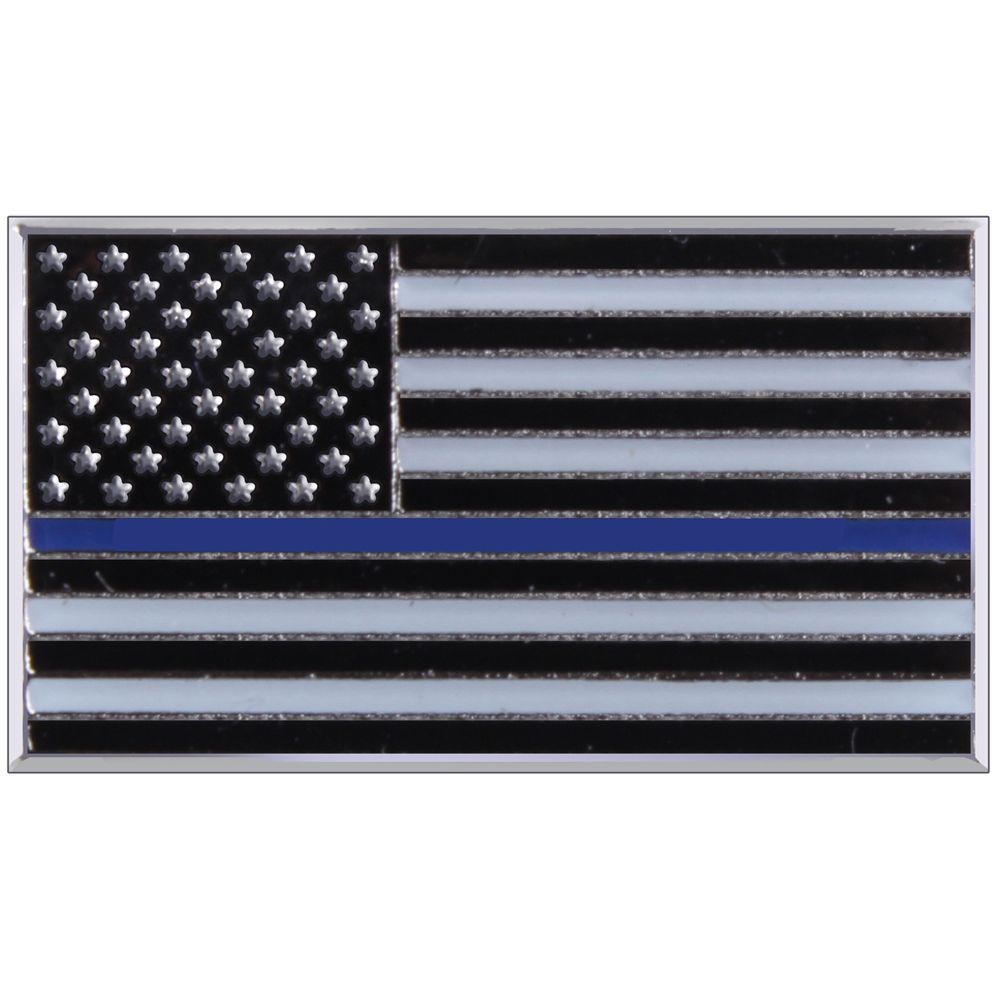 The Thin Blue Line is a symbol of respect and support for Police and Law Enforcement Officials; show your support with the Thin Blue Line Flag Pin. This US flag pin is brass plated with a thin blue line in the center and measures 3/4" x 7/16"