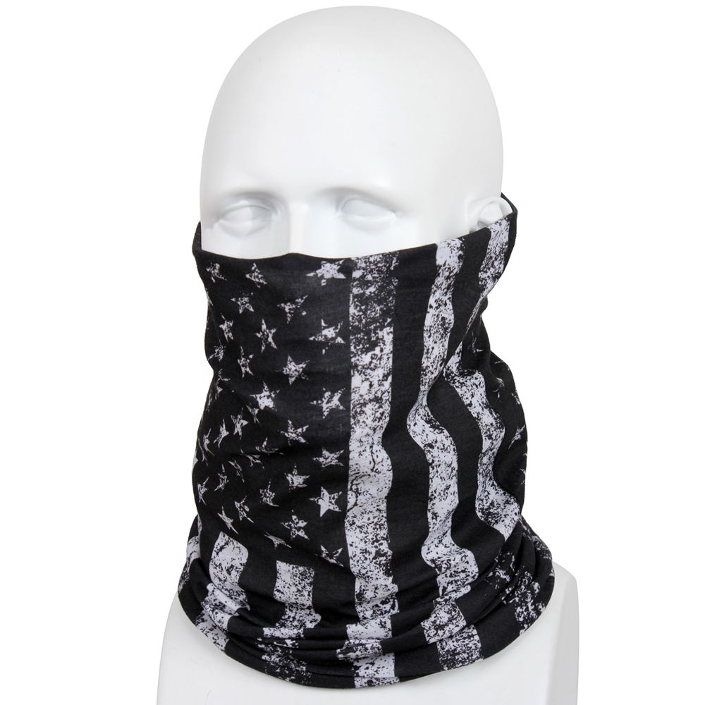 U.S. Flag Multi-Use Tactical Wrap is an incredibly versatile piece of headwear that has the ability to be worn as a bandana, neck gaiter, dust screen, balaclava, scarf, and/or hat. This multi-use bandana features a black and white U.S. flag design. Made of a breathable, super soft high-performance polyester material, the tactical wrap is wind resistant and wicks away moisture; keeping you cool, dry and protected from the elements.