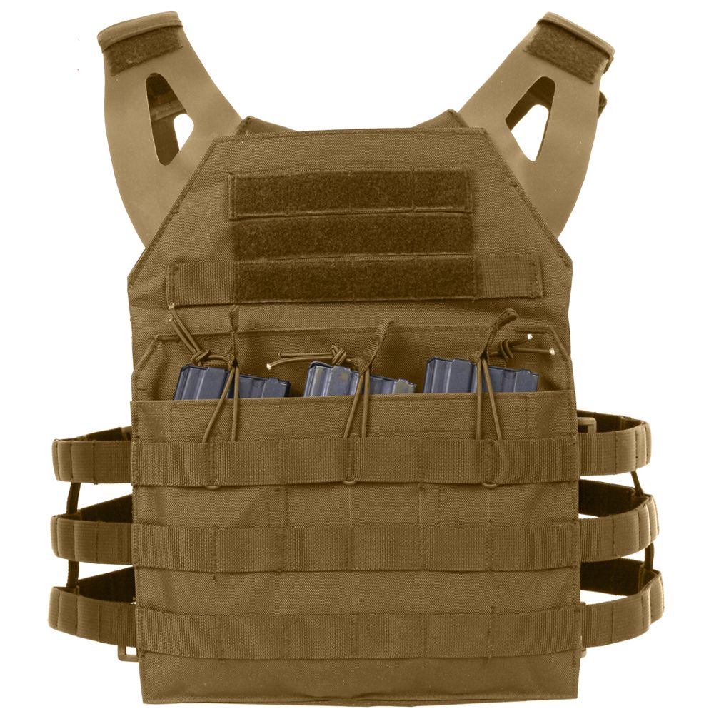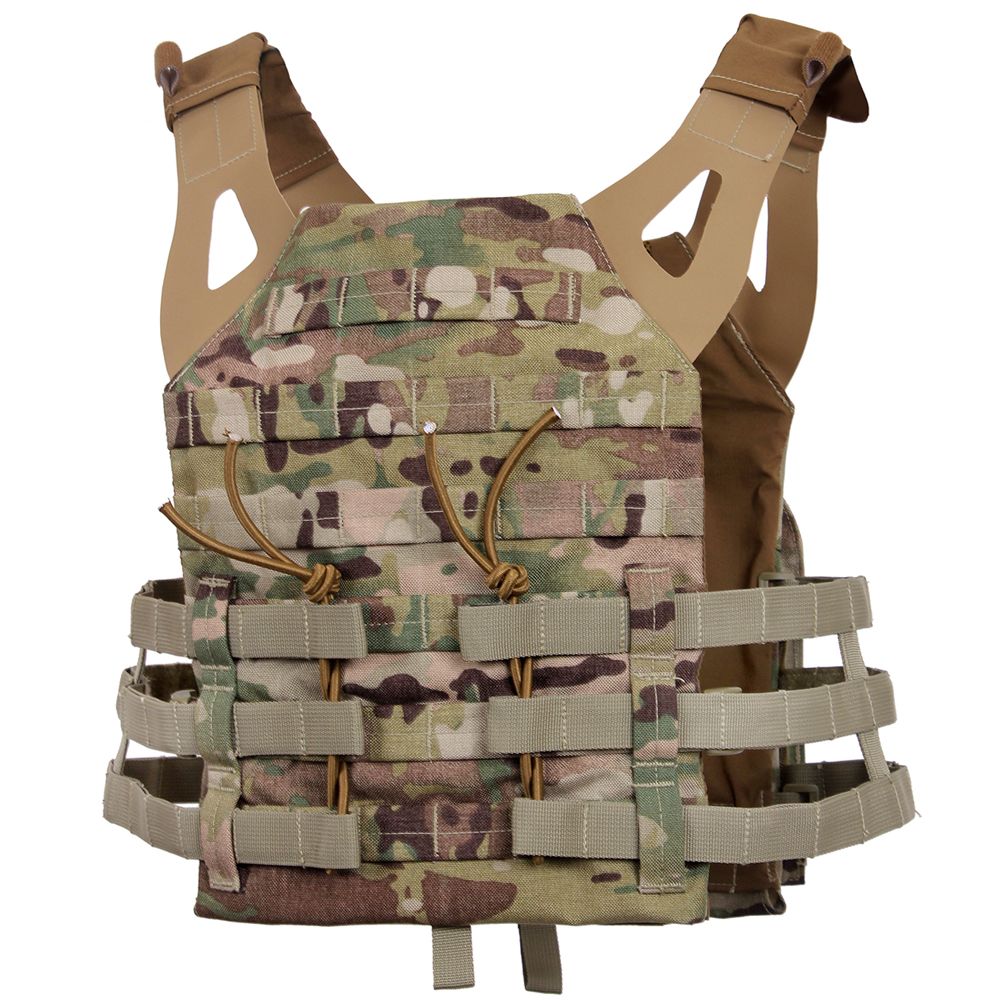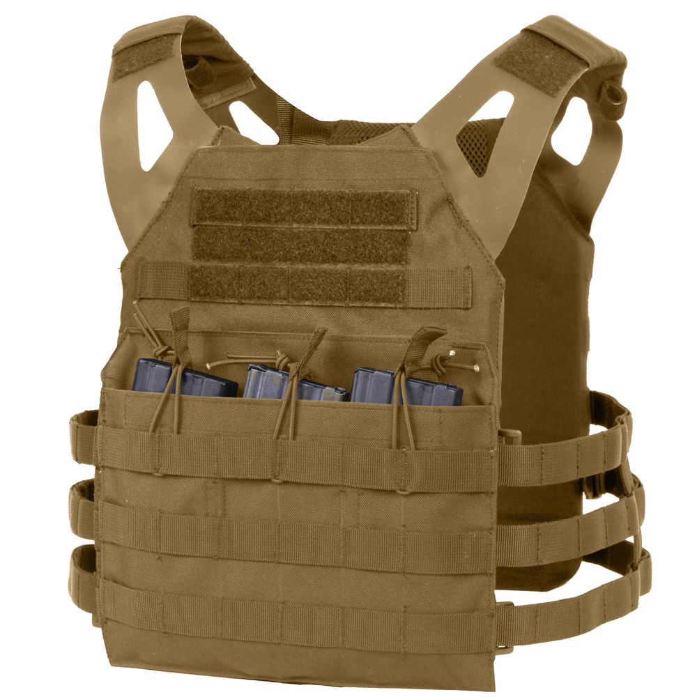 The Lightweight Plate Carrier Vest is not your typical plate carrier vest, weighing in at just over 1 pound this tactical vest offers superior weight savings, mobility, and ventilation for the user. The front of the tactical vest features three rows of MOLLE loop material, three pistol mag slots at the top center and three rifle mag slots both with elastic separators & elastic cord and hook & loop closures. In addition, the front features an integrated MOLLE system with three rows of MOLLE webbing for attaching MOLLE pouches and gear. The back of the vest features six rows of MOLLE webbing. A skeletonized MOLLE cummerbund system is designed to ensure optimal fit, minimal weight and added ventilation with three rows of durable plastic reinforced MOLLE webbing. The vest is fully adjustable with two elastic cords for attaching to the back side of the vest and 5"x5" panel with loop front and hook back. The shoulder straps are also adjustable with a soft material covering the hook & loop straps, and the straps are fitted with hook & loop tags for attaching a hydration hose. Both the inside front and back panels are equipped with a stretch mesh material for added comfort and ventilation. Lightweight Tactical Vest has stripped away the bulk of a typical tactical vest for an ultra-lightweight fit.