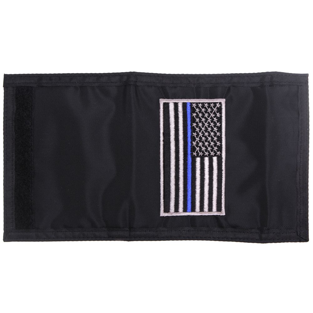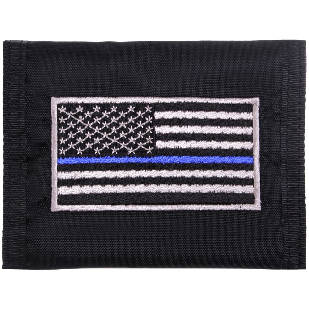 Classic tri-fold commando style wallet embroidered with the Thin Blue Line Flag. The wallet is made of 420D Nylon and features 5 inside pockets and a secure hook and loop closure. The 5 pockets are ideal for holding money, cards, and multiple forms of ID. The Thin Blue Line is a symbol of respect and support for Police and Law Enforcement Officials; show your support with Thin Blue Line Flag Nylon Commando Wallet.