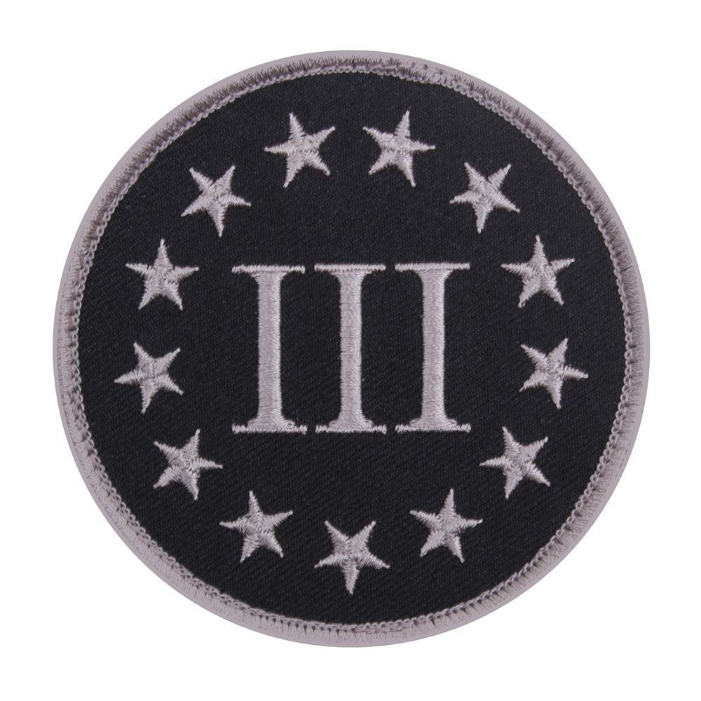 The Three Percenter Patch is a 3.25" round patch with the roman numeral "III" encircled by stars. Patriots everywhere can show off their three percenter patch by displaying it on any loop field. Patches with the item #’s starting with ‘P’ are individually packaged with a header card.