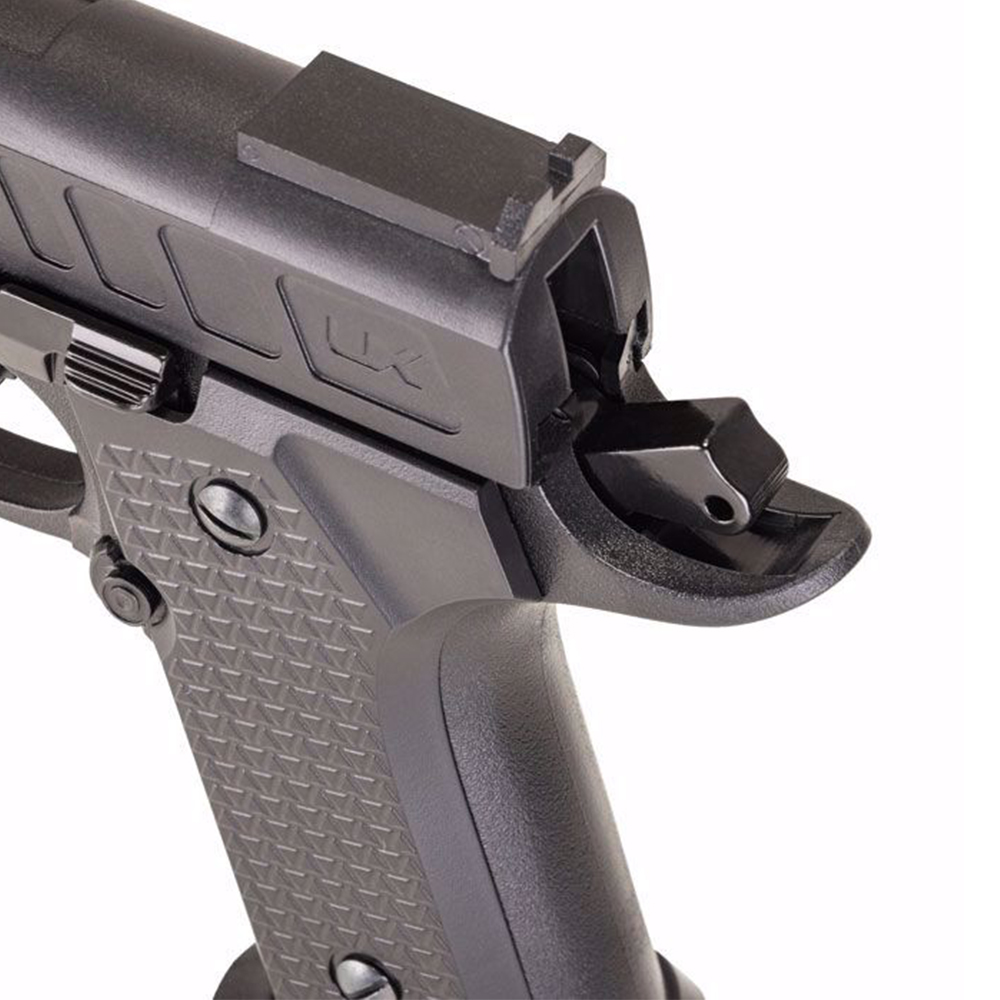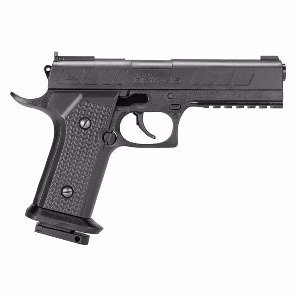 The Umarex .177 DSX 45 Spring Air BB Pistol is a reliable and affordable spring-powered airgun, perfect for casual shooting and target practice. Featuring a drop-free magazine with a large 200-round BB reservoir and a 13-shot rapid-load magazine, this pistol allows for quick and easy reloading. With a pull-and-release slide, textured grip, and a Picatinny-style rail, this air pistol offers ease of use, comfort, and customization options for accessories.