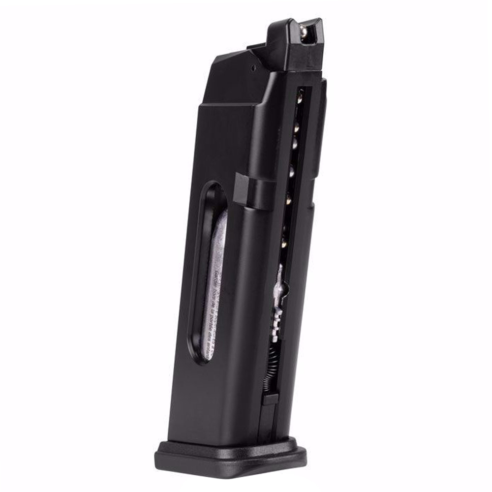 A faithful Gen5 style BB pistol with MOS compatibility for a wide range of mini red-dot sights. The pistol uses a single 12 g CO2 inside the 17-round magazine to propel steel BBs at roughly 300 FPS, and the blowback action provides convincing slide movement.