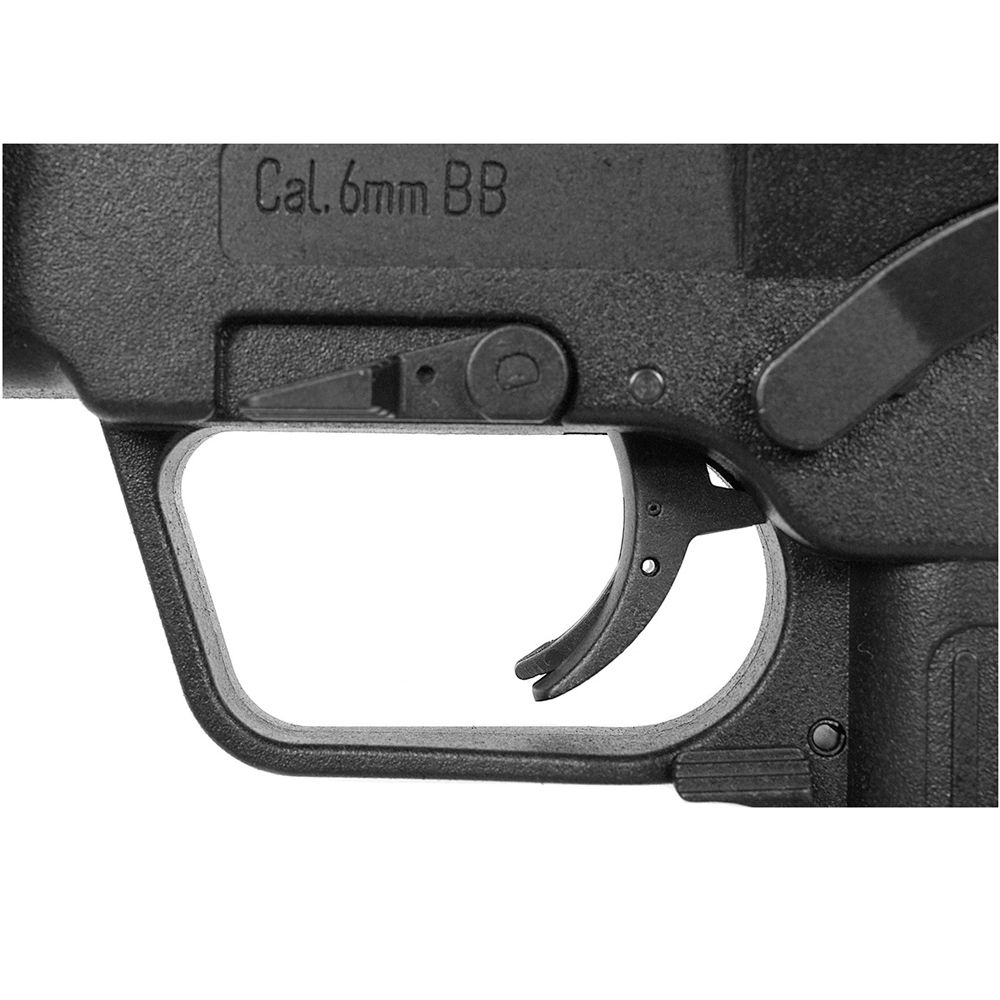 You won’t find an airsoft rifle much more realistic than this one. The Umarex HK MP7 is an exact replica of Heckler & Koch’s iconic submachine gun including all official H&K trademarks and engravings. This compact GBB gun is fit for a range of combat styles thanks to a retractable stock, folding foregrip, and flip-up iron sights. Three upper rails provide room to attach further accessories like lasers or scopes. Even the magazine is ultra-realistic with its full-metal construction and 40-round capacity!