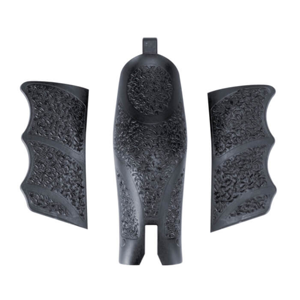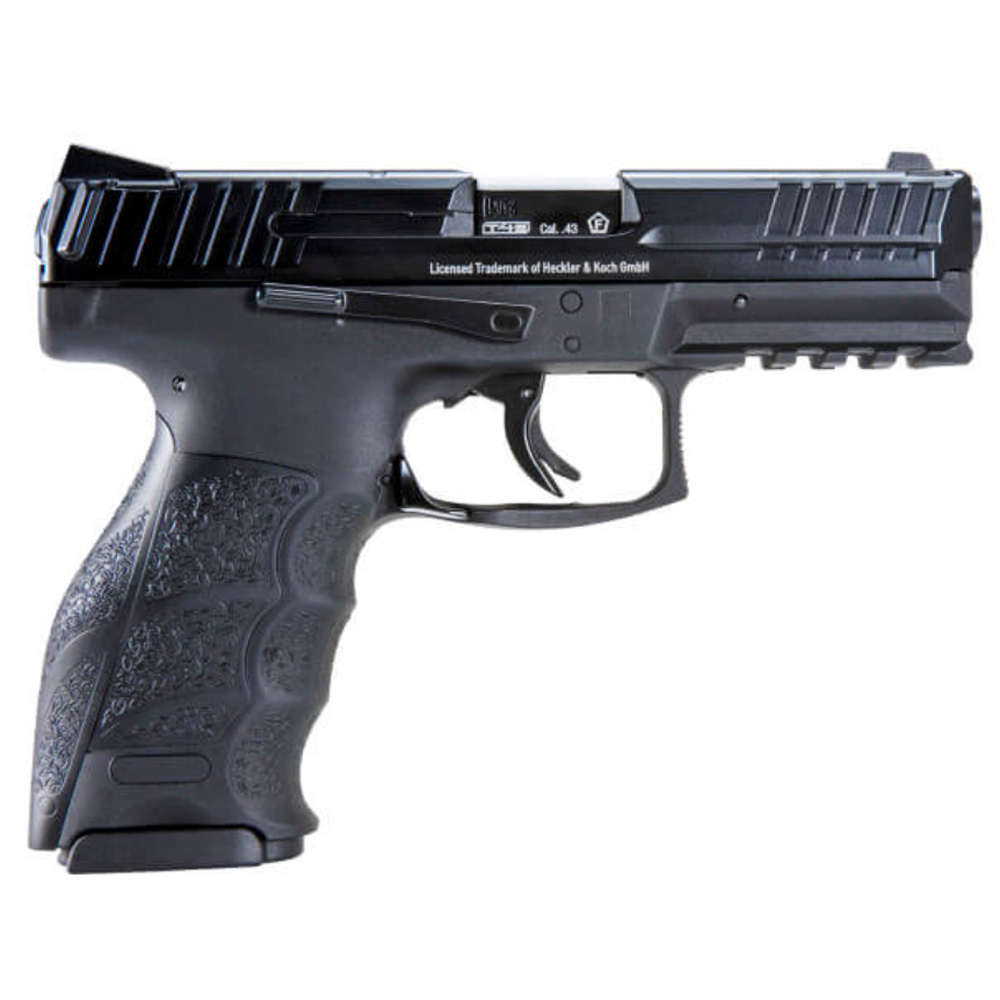 The HK VP9 has been lauded by shooters of all stripes for its superior ergonomics and durability. T4E, a Umarex brand, is now producing a fully licensed .43 caliber paint/dust/rubber ball replica pistol of this incredibly popular Heckler & Koch sidearm. The T4E HK VP9 features blowback slide operation that helps the shooter experience real-life performance from this marker. Additionally, the 1:1 ratio VP9 features last round hold open, a working magazine release, and identical grip shape and texture as the firearm. Give your training and magfed paintball experience the real HK treatment it deserves.