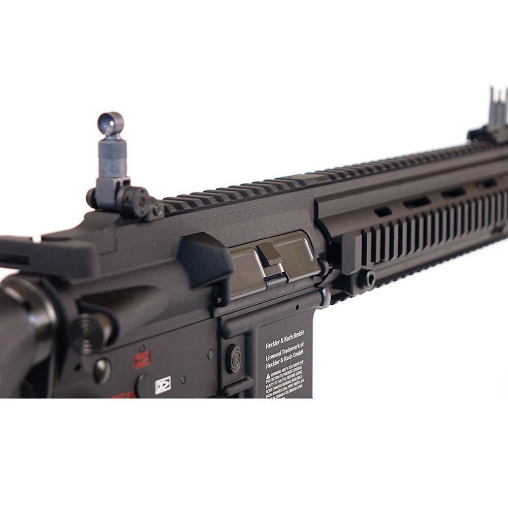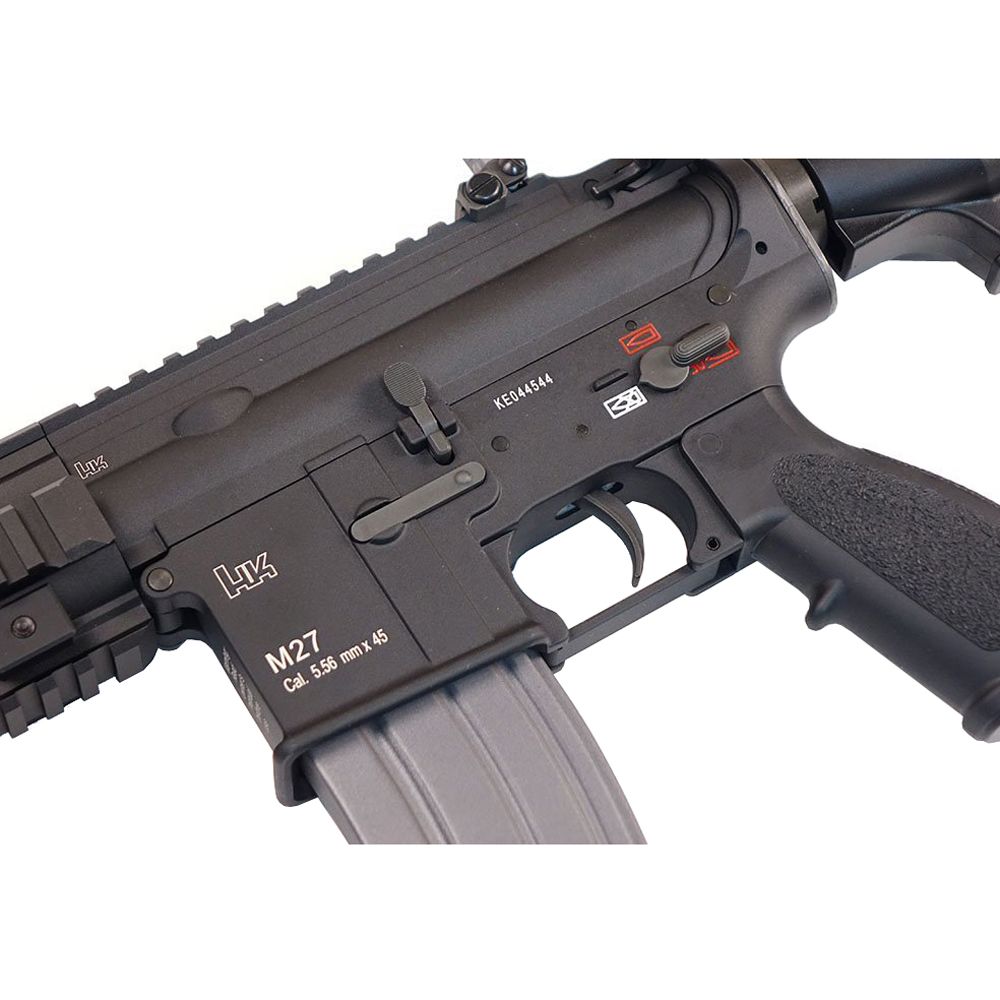 The M27 Infantry Automatic Rifle (IAR) is a lightweight, magazine-fed 5.56mm weapon used by the United States Marine Corps. It is intended to enhance an automatic rifleman's maneuverability and displacement speed, and it is based on the HK416. The Elite Force H&K M27 IAR by VFC replicates many of the details of the real-steel firearm including the lever on the charging handle, the flip-up iron sights, and of course the fully licensed H&K Trademarks. The VFC Avalon gearbox is an improved Tokyo Marui Spec Ver2 with low friction high quality steel bearings, built-in MOSFET, and quick change spring system; driving the gearbox is a high torque neodymium magnet motor.