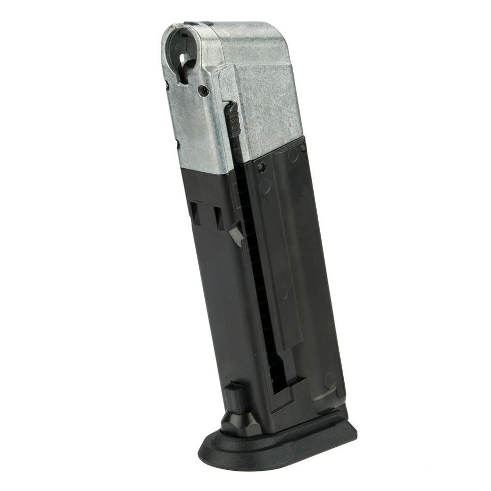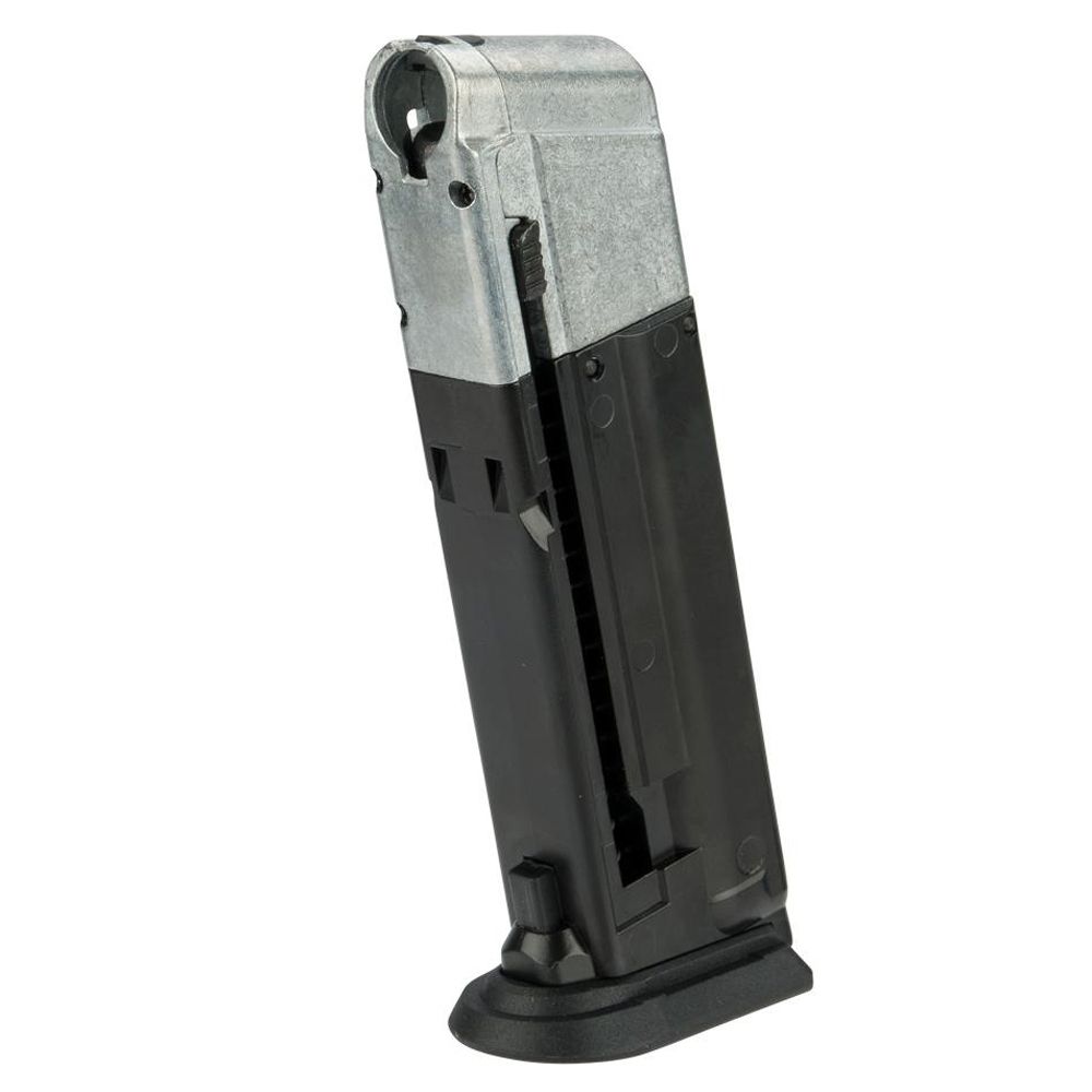 Paint the town red with the Umarex paintball gun replica of the Walther T4E PPQ M2. This .43 caliber blowback pistol has a polymer and metal construction identical to the real gun. It has authentic Walther trademarks and features, including an ambidextrous slide release, adjustable yellow dot sights, Picatinny accessory rail, and trigger safety. The PPQ M2 T4E comes in a hard shell pistol case along with a cleaning hose and spare magazine spring.