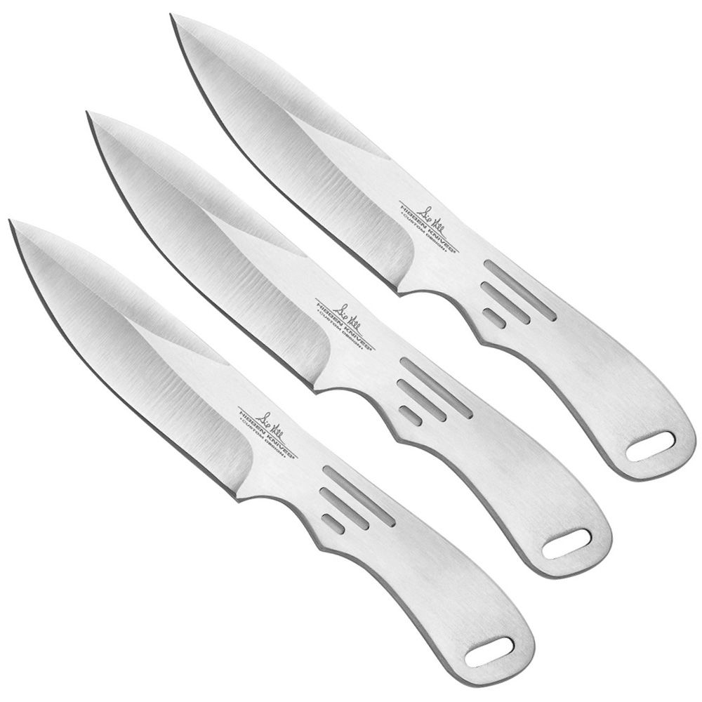 The Pro Thrower line is designed for speed and accurate release. If Gil Hibben trusts these knives, why shouldnt you? Constructed of one-piece of 420 stainless steel, sets have a trigger-grip design that guides them into the same consistent and accurate release each time they are thrown and include heavy duty nylon sheaths. 7 1/8" overall.