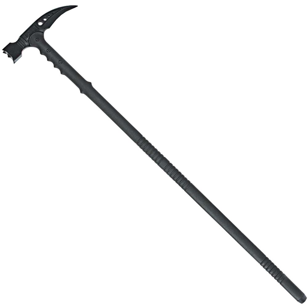 The M48 Kommando Tactical Survival Hammer from United Cutlery is the perfect companion for hiking and camping. With a 37 3/8” overall length, it’s great as a walking staff while camping. The cast 2Cr13 stainless steel, black oxide-coated head can pummel almost anything with ease. The cane handle features a defensive war hammer head and a curved back spike, which offers great applications as an effective breaching tool and defensive hammer in addition to being a fully functional walking cane. The 30% fiberglass handle is nearly indestructible, and the axe head is attached to it with metal bolts. Includes a rubber toe on the end of the cane.