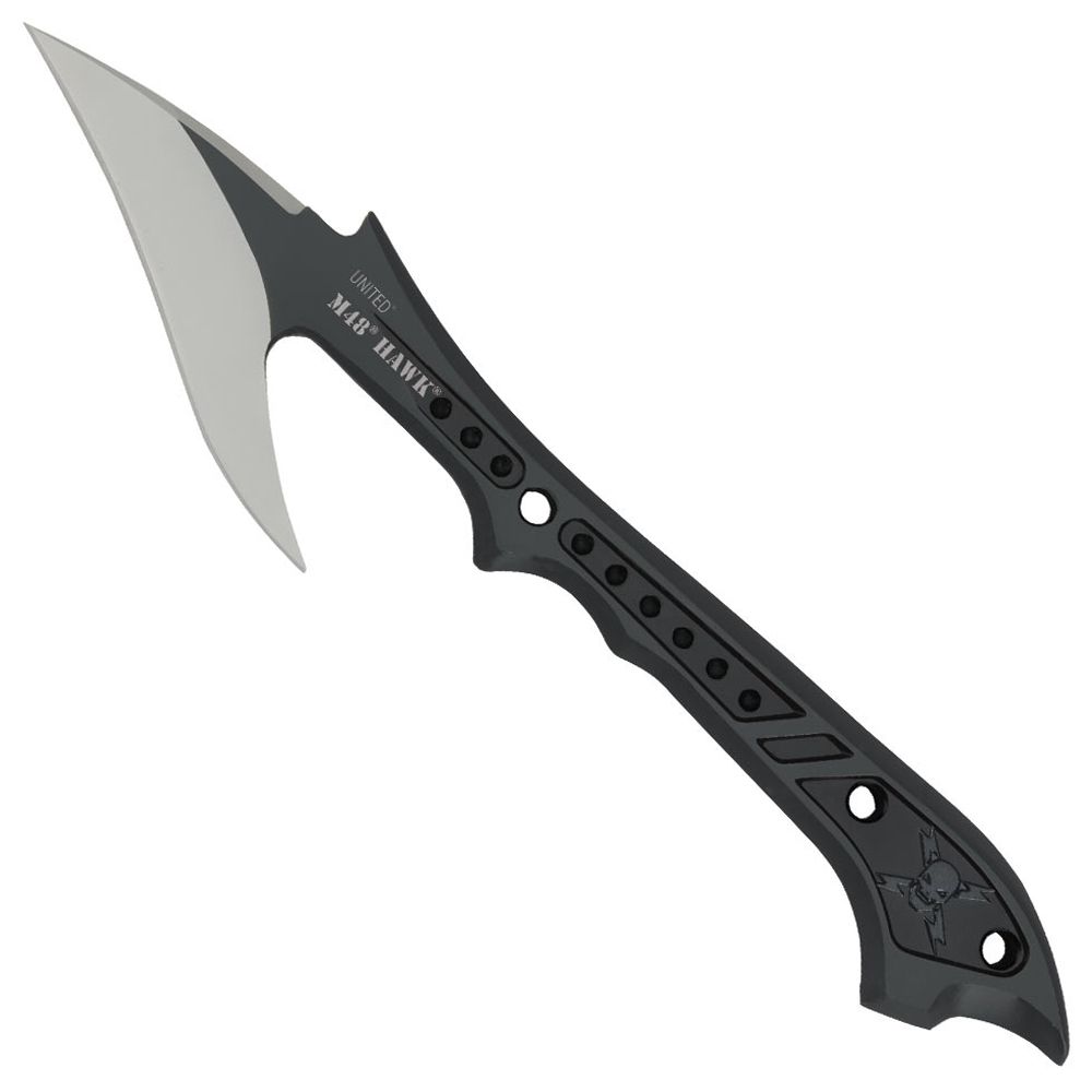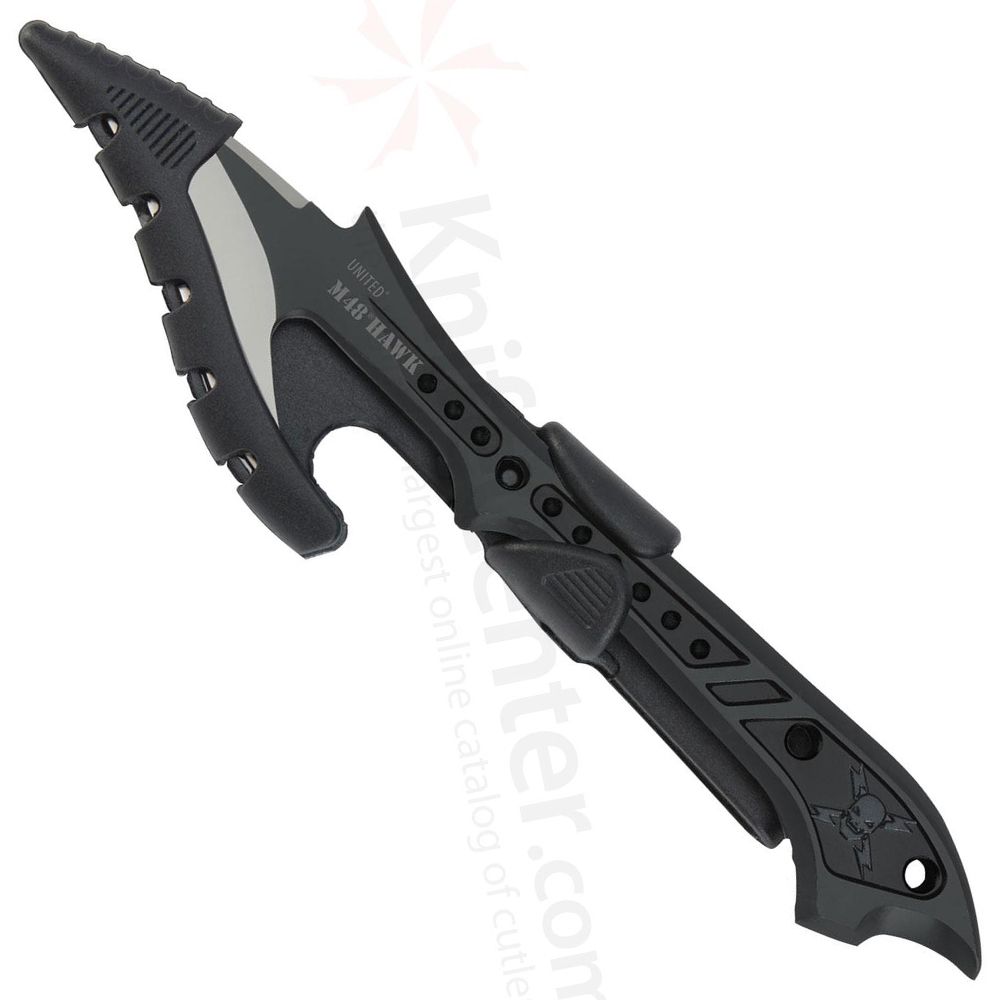 This M48 Hawk Harpoon knife features a razor-sharp blade that will slice through anything like butter, and a tip that will penetrate practically any target effortlessly. The wicked curve of this powerful blade allows it to be used for a variety of purposes. Lashing holes allow you to attach this harpoon knife to a wooden rod or stick, making an excellent harpoon or spear that can be used for hunting, fishing, and much more. Crafted of one solid piece of rock-hard AUS-6 stainless steel with a black oxide coating, this harpoon knife won’t bend or break, and will stand up to tough, repeated use. The rubberized sheath will house this harpoon knife securely and protect you from its razor-sharp blade when not in use. Measures 8 ¼” overall.