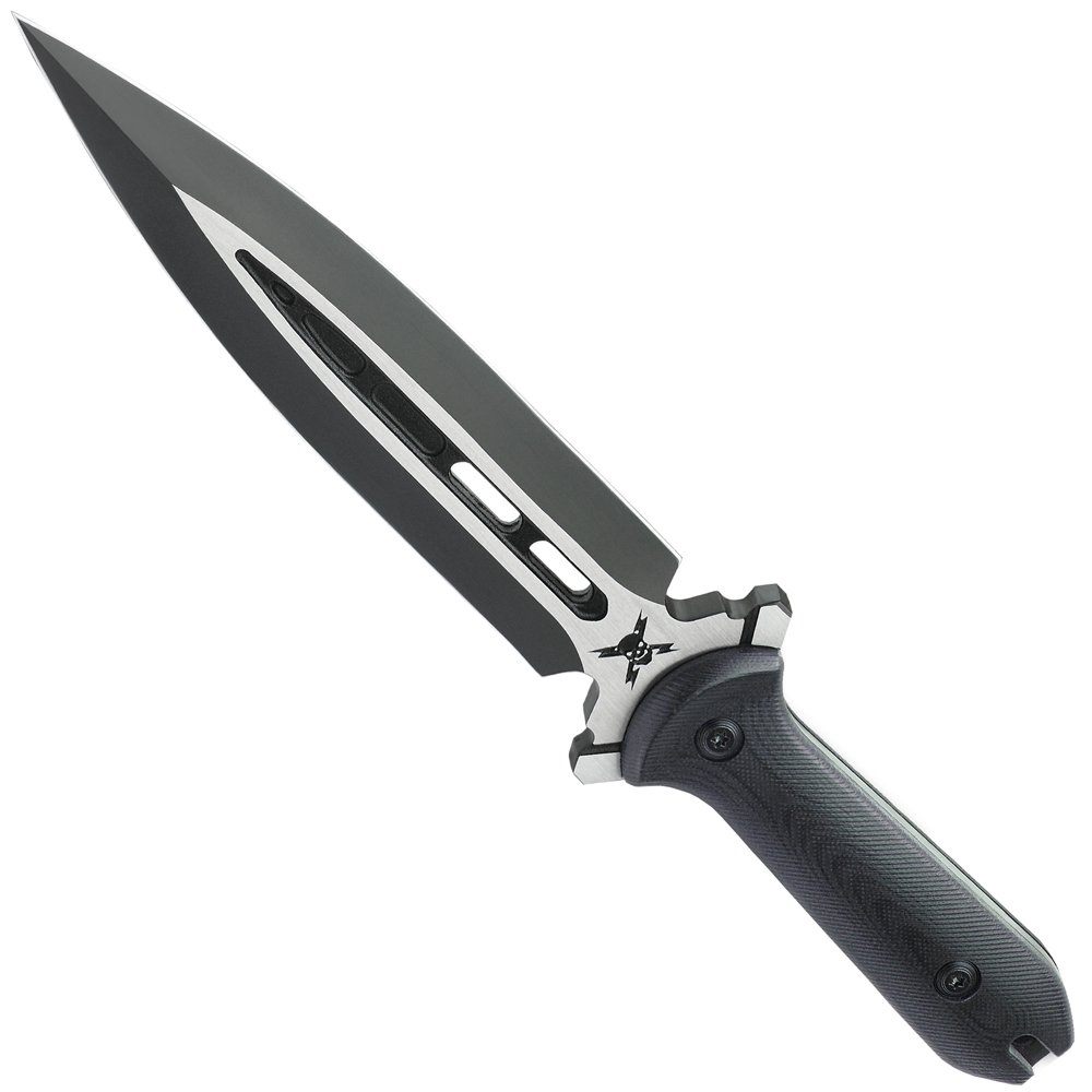 The M48 Talon Dagger takes its design inspiration from the popular M48 Talon Survival Spear and gives you an awesome spear that will fit comfortably on your hip and in one hand. It has a 3/8" thick, 6 7/8” cast 2Cr13 stainless steel dagger blade with a black oxide coating and satin finish highlights. The G10 handle scales are securely attached to the full tang with heavy-duty screws and the handle has a paracord lanyard. The 11 5/8” fixed blade knife slides securely into an injection molded TPR and nylon belt sheath, which has a snap closure strap.
