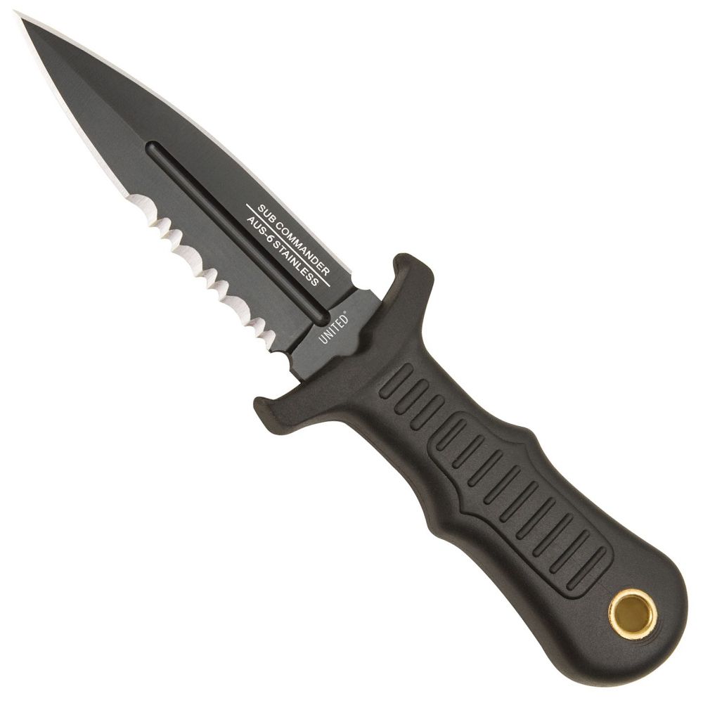 The ultimate in concealed, compat law enforcement; these Sub Commander mini boot knives hide discreetly within reach at all times. An injection-molded sheath with nylon lanyard ensures they are close at hand in case of attack. An impact resistant TPR handle is strong and textured for a slip-proof grip, complete with a brass lanyard hole. Razor-sharp AUS-6 stainless steel blades are double edged with a complete blood-groove for an extreme cut whtn stabbed and slashed. The extended TPR guard ensures no accidental injuries to your hand while in use.
