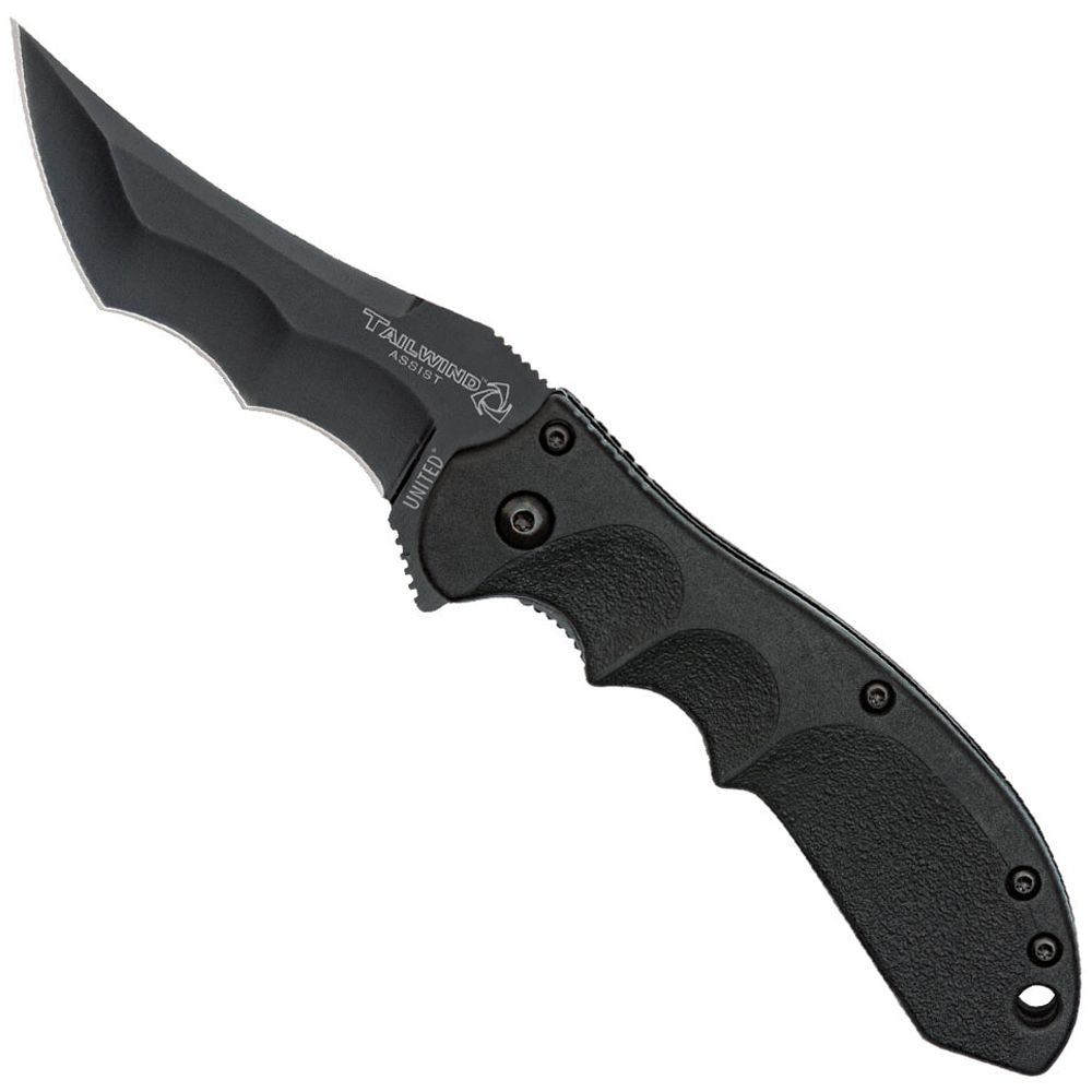 This Tailwind Assisted-Open Urban Recurve folding knife is the ultimate personal protection knife. The 2 1/2" 440 stainless steel blade is razor sharp and the tanto point is built strong to last up to years of abuse. The lightning-fast Tailwind assisted-open mechanism is activated by pressing the blade spur on the back of the blade. The rugged injection-molded nylon handles feel great in your hand and offers a sturdy pocket slip to hold it in place. 6" overall.