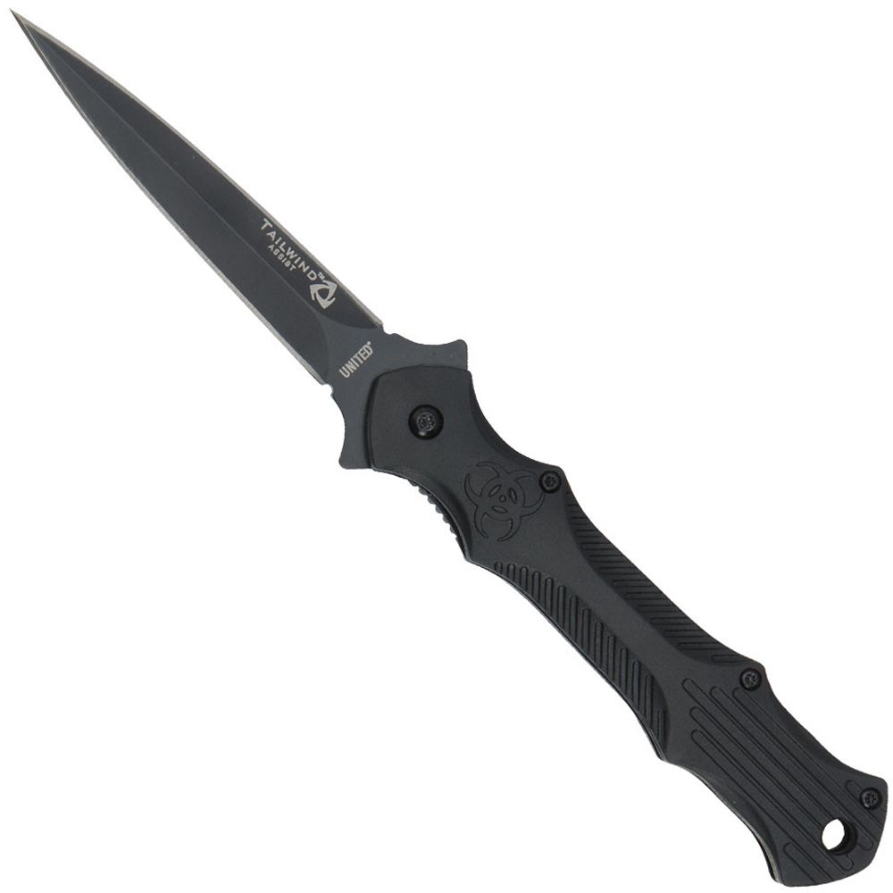 This Tailwind Assisted-Open Urban Tactical stiletto is the ultimate personal protection knife. The 2 1/2" 440 stainless steel blade is razor sharp and the slim profile of this stiletto fits undetected in a pocket or pack and offers a sturdy stainless steel clip to hold it in place. The lightning-fast Tailwind assisted-open mechanism is activated by pressing the blade spur on the back of the blade. The rugged injection-molded nylon handles feel great in your hand. 6" overall.