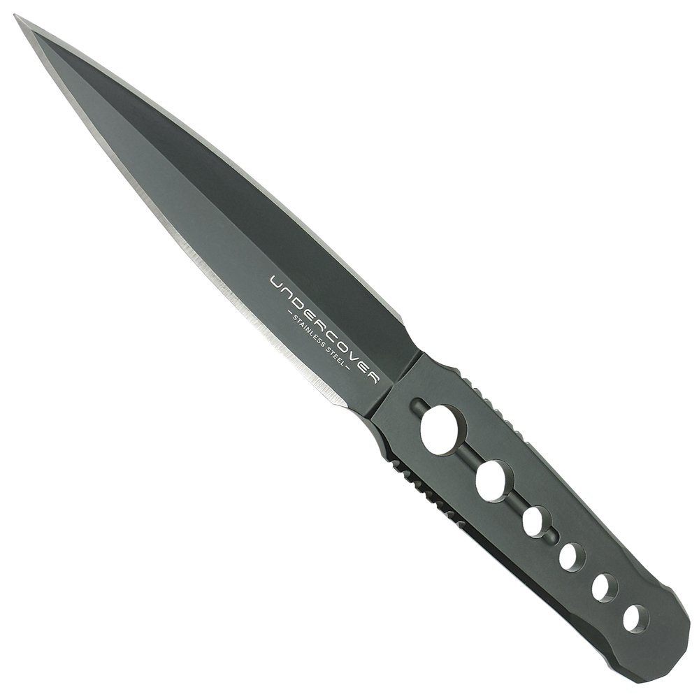 The Undercover CIA Stinger Knife And Sheath was designed to be that easy-to-hide, backup buddy they don’t expect to sting them! The stinger has a solid, one-piece 3Cr13 stainless steel construction with a 3 7/8”, razor-sharp blade and penetrating point. A non-reflective, black oxide coating and weight-reducing thru-holes make this compact fixed blade perfect for covert missions. The 7 1/8” overall knife snaps securely into a tough injection molded nylon sheath with a removable boot clip.