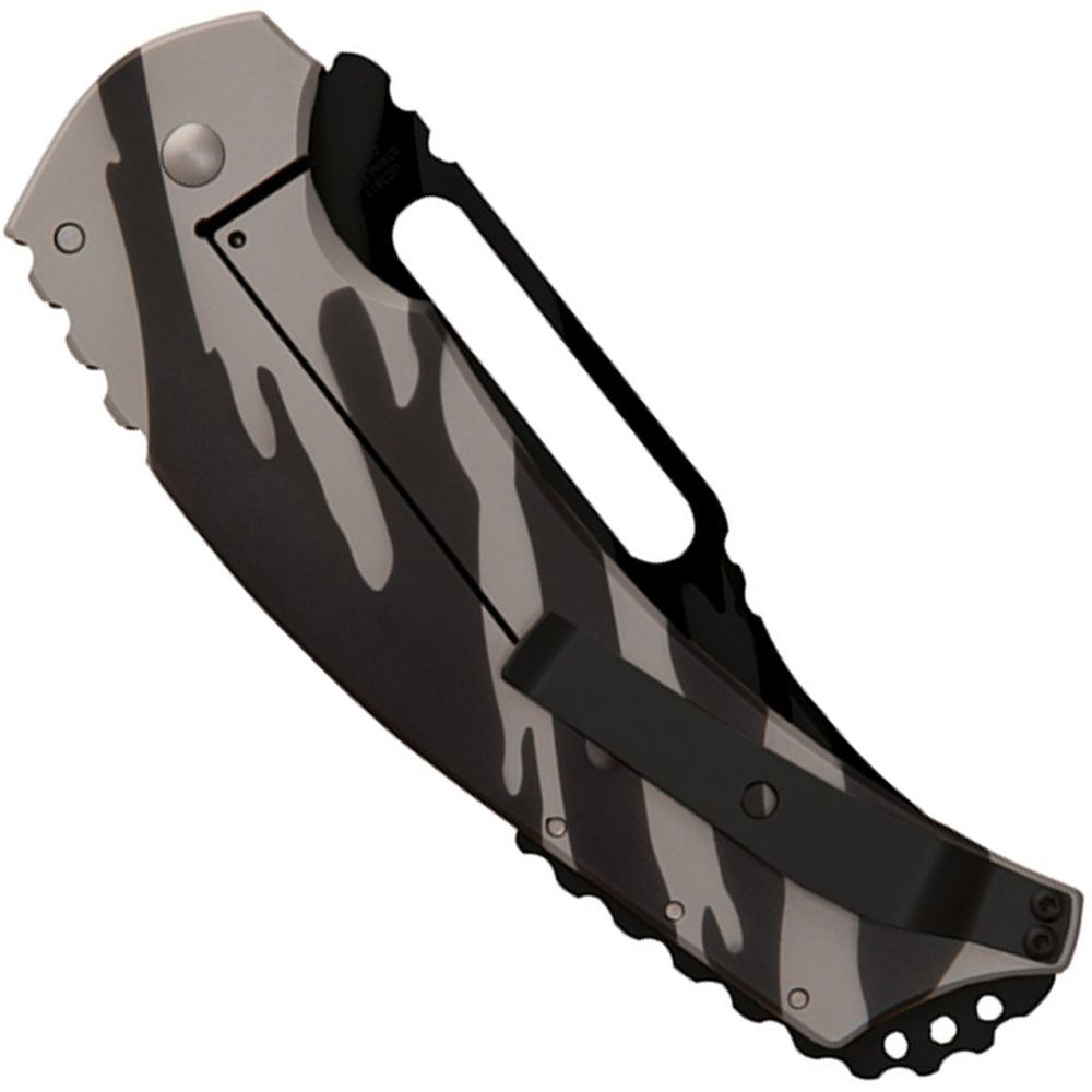 This Willumsen Urban Tactical Blondie folding knife has been hand-crafted with scrupulous details offering an exact representation of a Willumsen custom knife. Rugged G-10 handle scales have been deeply jigged for an impressive grip and a tactical appearance. An aggressive-tanto-point, black-coated 440C stainless steel blade has been honed to a razor’s edge and its high-carbon content gives it an amazing edge retention quality. An oversized thumbhole allows for easy one-handed opening and a stainless steel pocket clip ensures your new knife will remain tight in your pocket or pack in transport. 4 3/8” blade, 5 3/4" closed, 10” overall.
