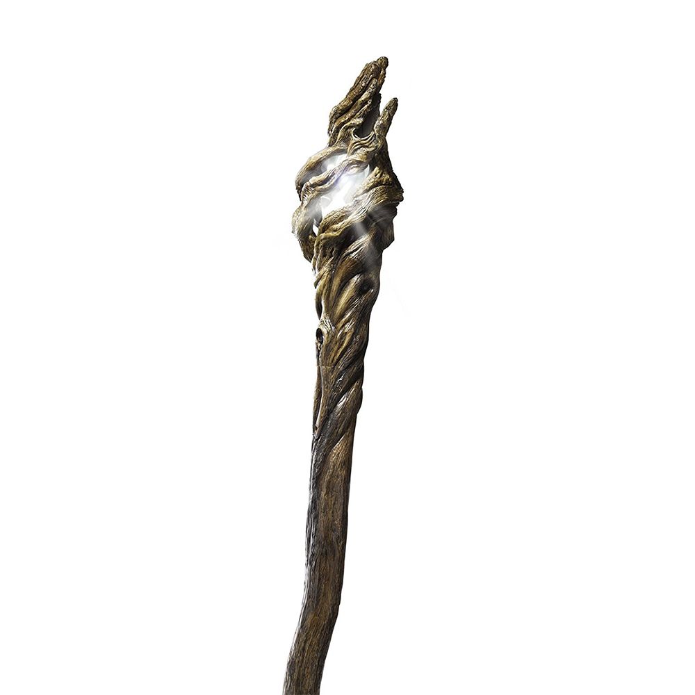 A special edition of the Staff of the Wizard Gandalf with an Illuminated crown that glows just like the one seen in The Hobbit: The Desolation of Smaug. Features a translucent lattice within the crown that holds a high intensity white LED (100 lumens, 50,000 hour lifespan). The light is activated by a hidden button in the side of the staff and runs on two replaceable AA batteries housed on the bottom of the shaft (battery lifetime approximately 20 hours).