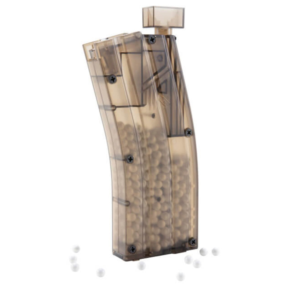 Gain time and speed on field when reloading by keeping this handy tool at hand. This M4 magazine shaped speed loader will fit most your M4 pouches and can virtually load any type of airsoft magazine without seconds. It is as easy to use. Just plunge the lever a few times till your magazine is fully loaded.