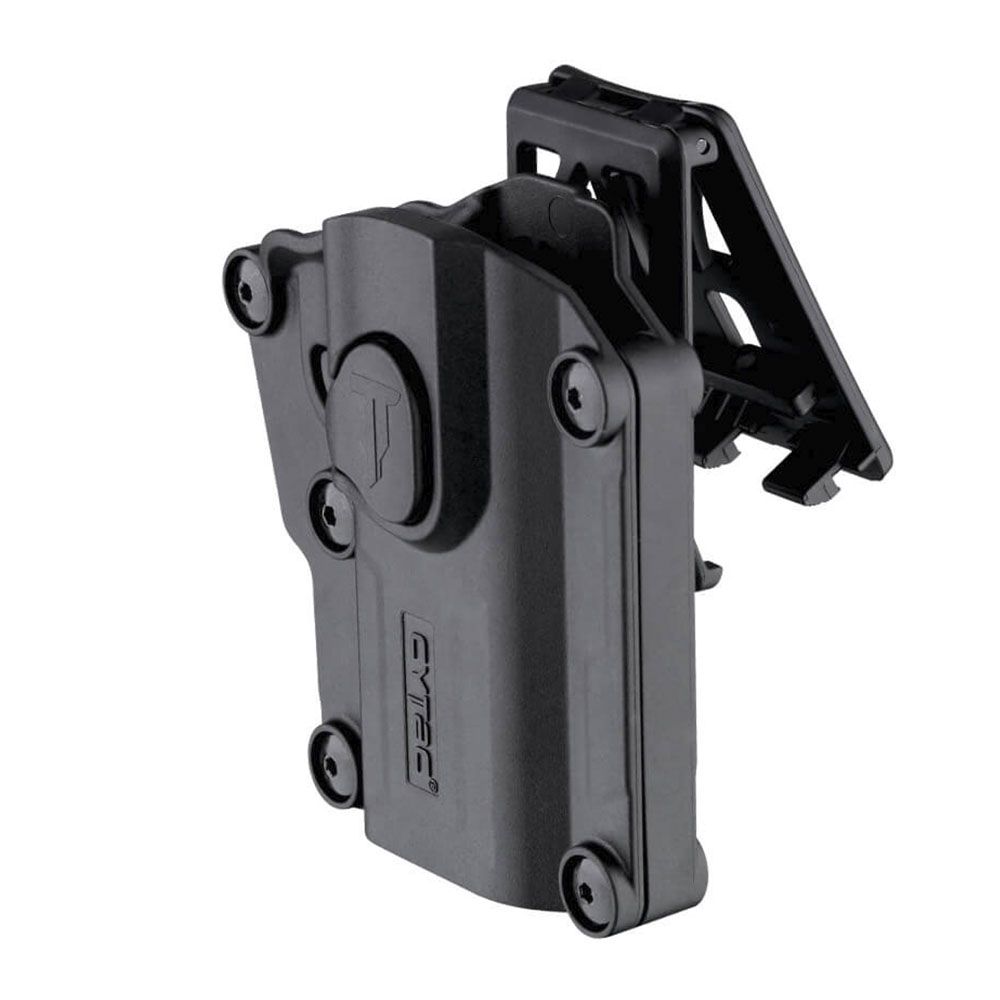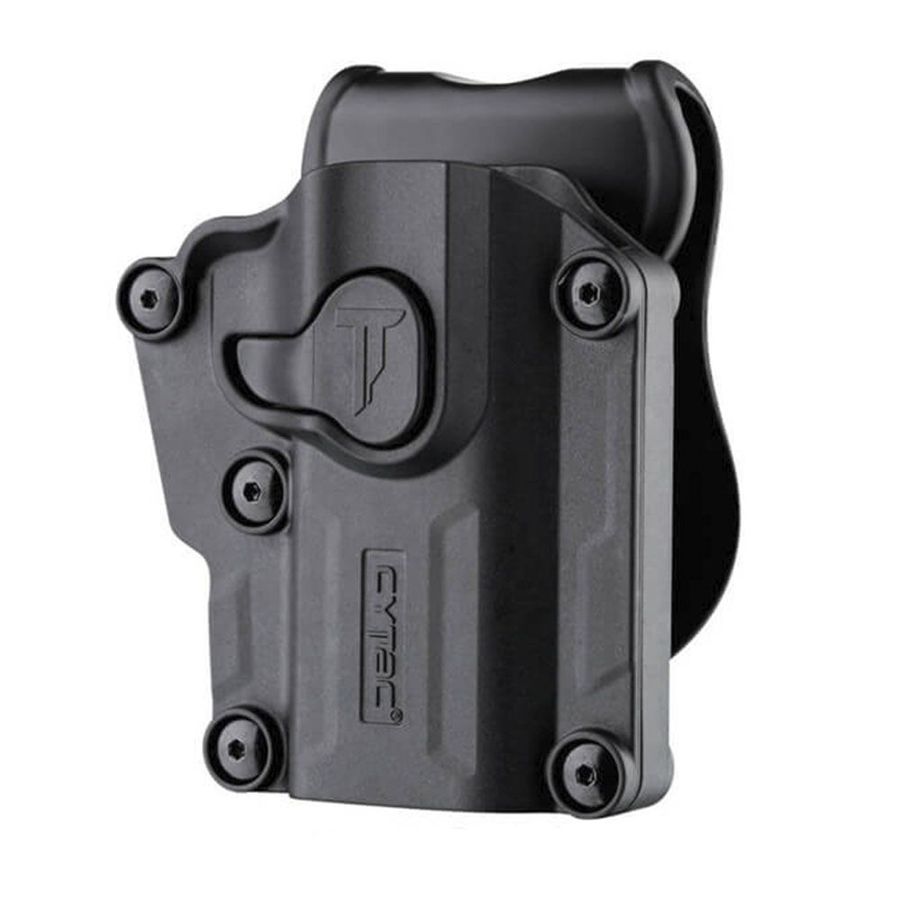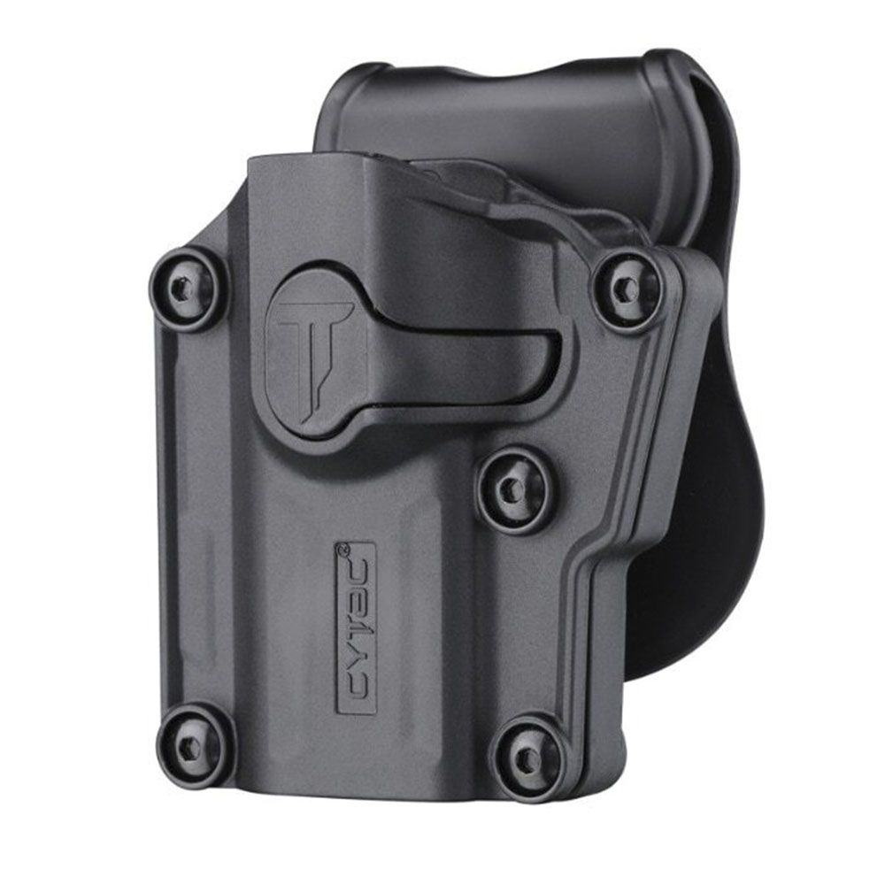 Cytac® universal holster is made with durable polymer and can be adjusted to fit nearly 60 pistols. It makes the most suitable choice for users owning different firearms..The holster features adjustable screws to turn the versatility into each perfect fit. Just loosen or tighten them, user with multiple guns can save cost in only one holster. 7 Carrying Ways Optional carrying attachments of paddle, belt clip, belt loop, MOLLE, drop leg platform, shoulder harness and single shoulder harness.360-degree Rotation Tooth gear attached to ensure every preferred carrying angle.