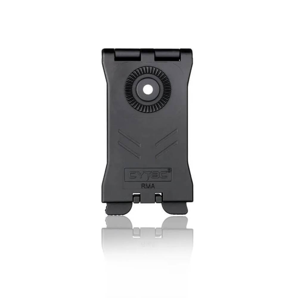 A carrying attachment mainly for tactical and military use. Just insert and snap, putting the Molle lock in place on the tactical vest, MOLLE bag, etc. Any R-Defender Holsters, magazine pouches, and other gears with tooth gear fit it.