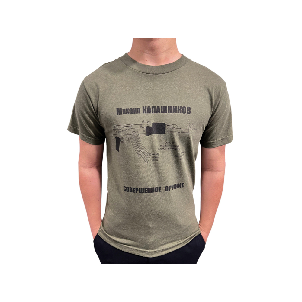 Celebrate the AK47 with this cool vintage Kalashnikov AK-47 printed T-Shirt featuring Kalashnikov graphic and classic Russian style text. Available in different sizes and colours, this tee shirt makes a great gift.