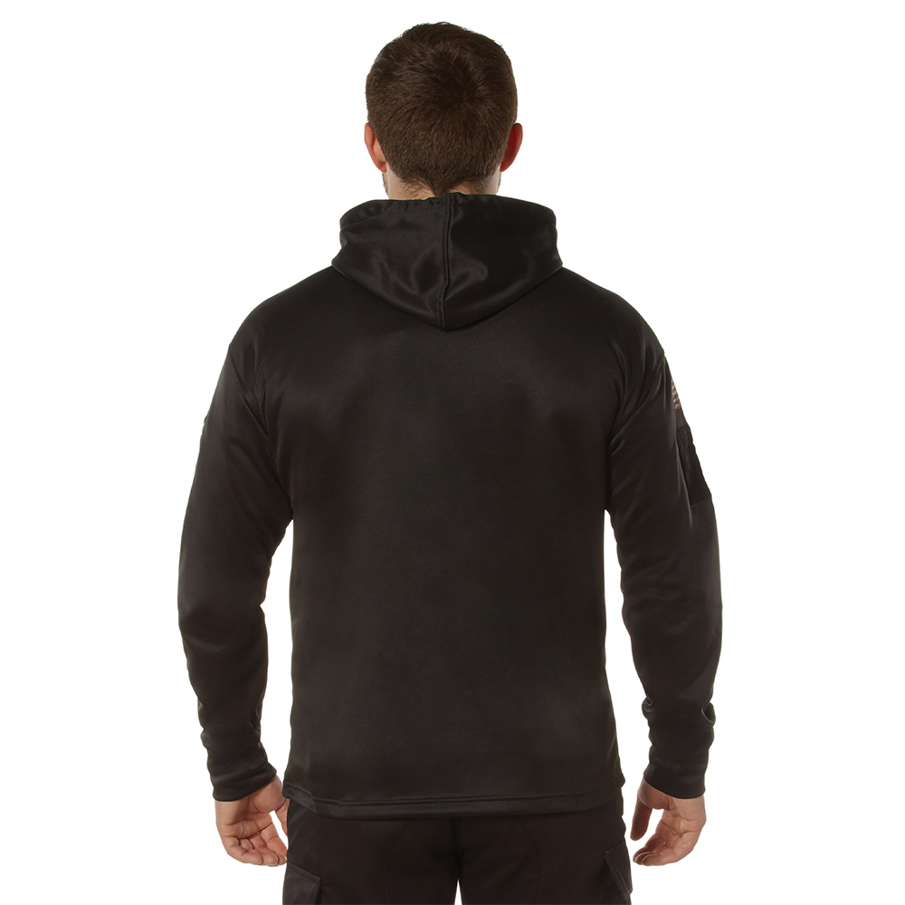 The U.S. Flag Tactical Concealed Carry Hoodie combines comfort, function, and quick access for your everyday needs. Built from durable polyester, this hoodie features a concealed carry pass-through kangaroo pocket, giving you an edge in accessibility. Zippered sleeve pockets provide extra storage, while the distressed U.S. flag print adds a bold statement. Designed for active individuals who need both style and practicality.