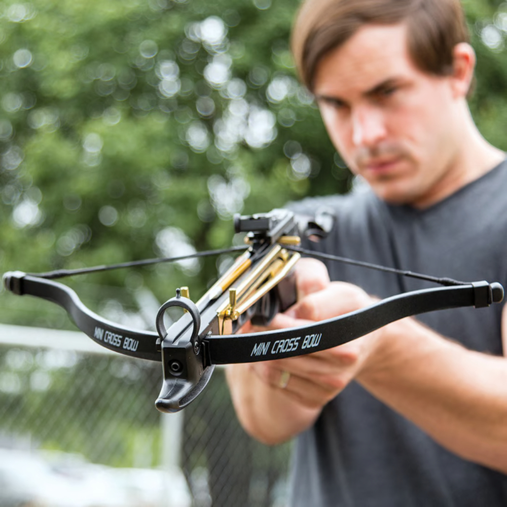 The Pistol Crossbow is a compact and versatile weapon that combines the power of a crossbow with the convenience of a pistol. With its small size and lightweight design, it is easy to handle and maneuver. This crossbow is capable of shooting bolts with accuracy and precision, making it suitable for target practice or small game hunting. Its portable nature makes it a great choice for outdoor enthusiasts or those looking for a unique and enjoyable shooting experience. Please note that proper safety precautions and local regulations should always be followed when using this product.