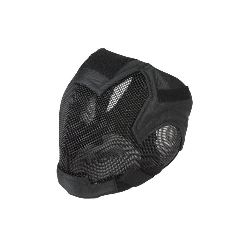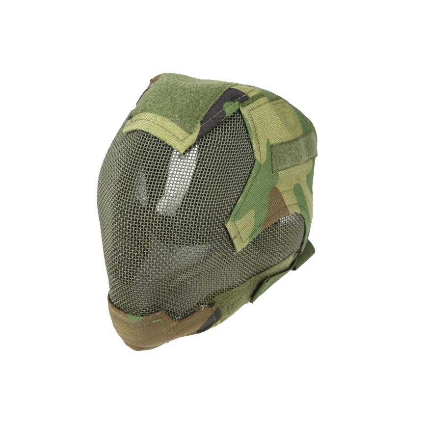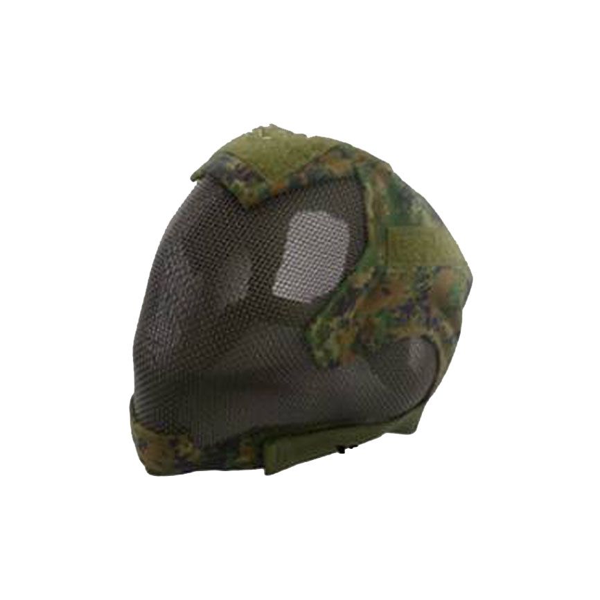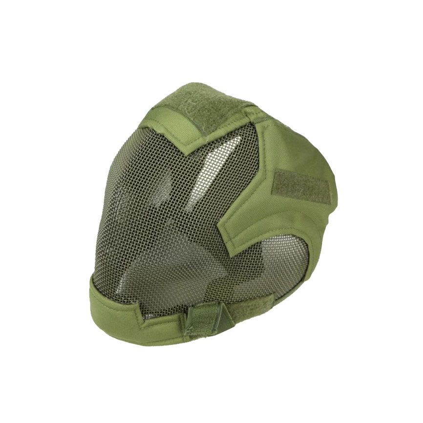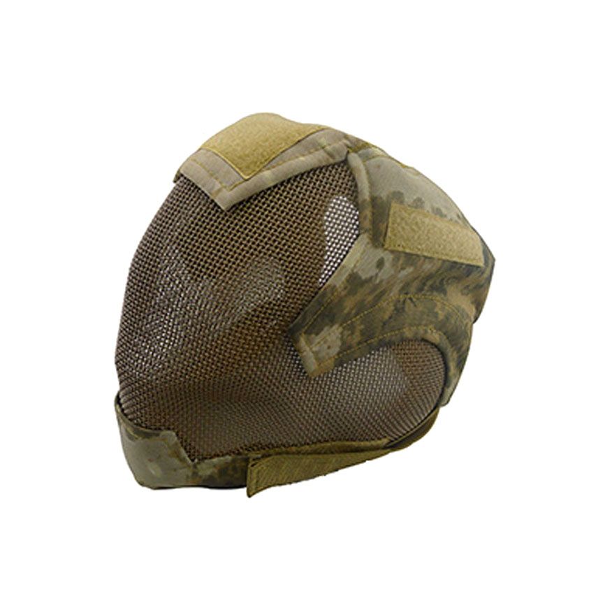 The V6 mask does protect full face including ears and a bit lower than chin. The mask features soft padding inside to make it feel more comfortable. Fits good and tight so it won't slip or fall down while playing. The masks come in a wide selection of colors and camouflage patterns.