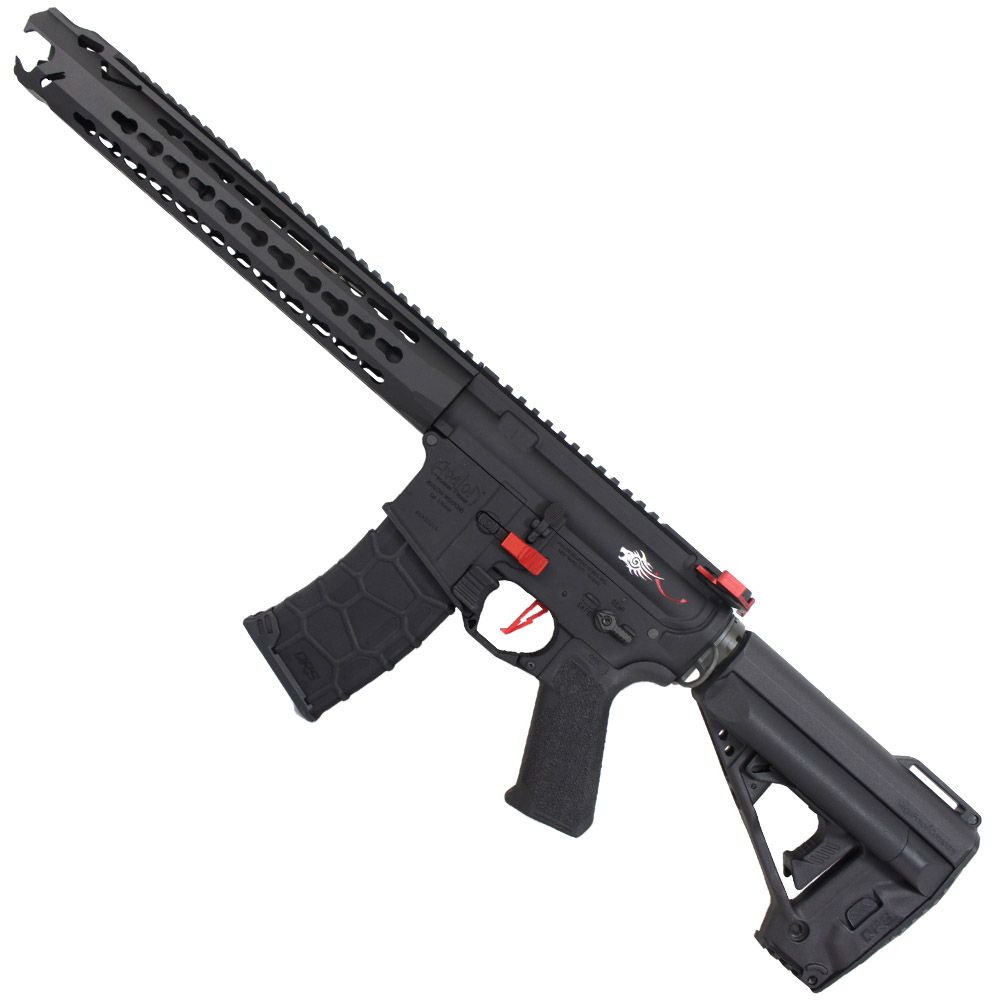 Take your opponents by surprise with the VFC Avalon Leopard AEG. This fierce rifle boasts a Monster Rail System and leopard-barrelled handguard that sets this M4 apart from the rest of the pack. It features all the trademark Avalon markings, internals, and reliability expected of the high-end gun manufacturer. The AEG comes in a hard shell rifle case so you can safely store it away when you've won your battles.