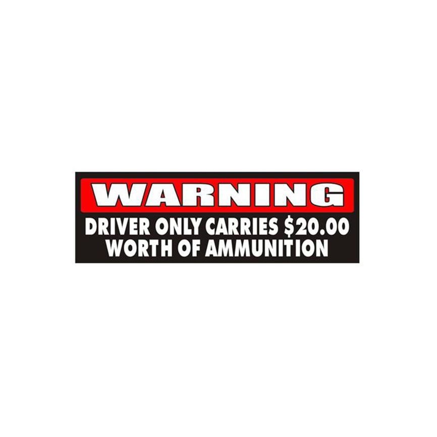 Warning Driver Carries 20 Ammunition Bumper Sticker