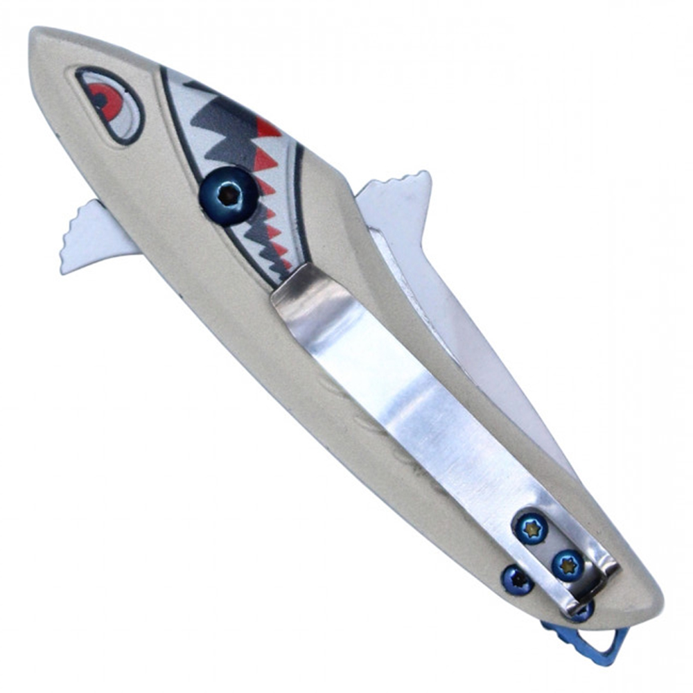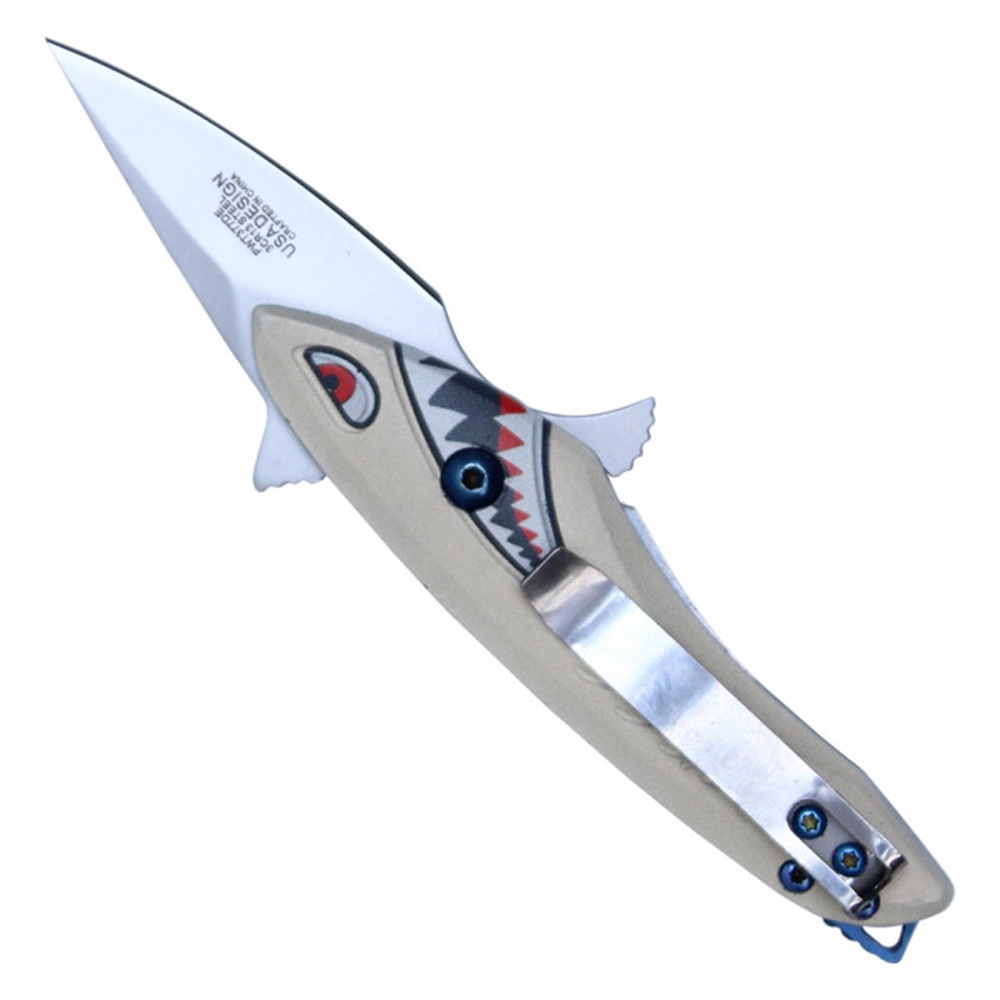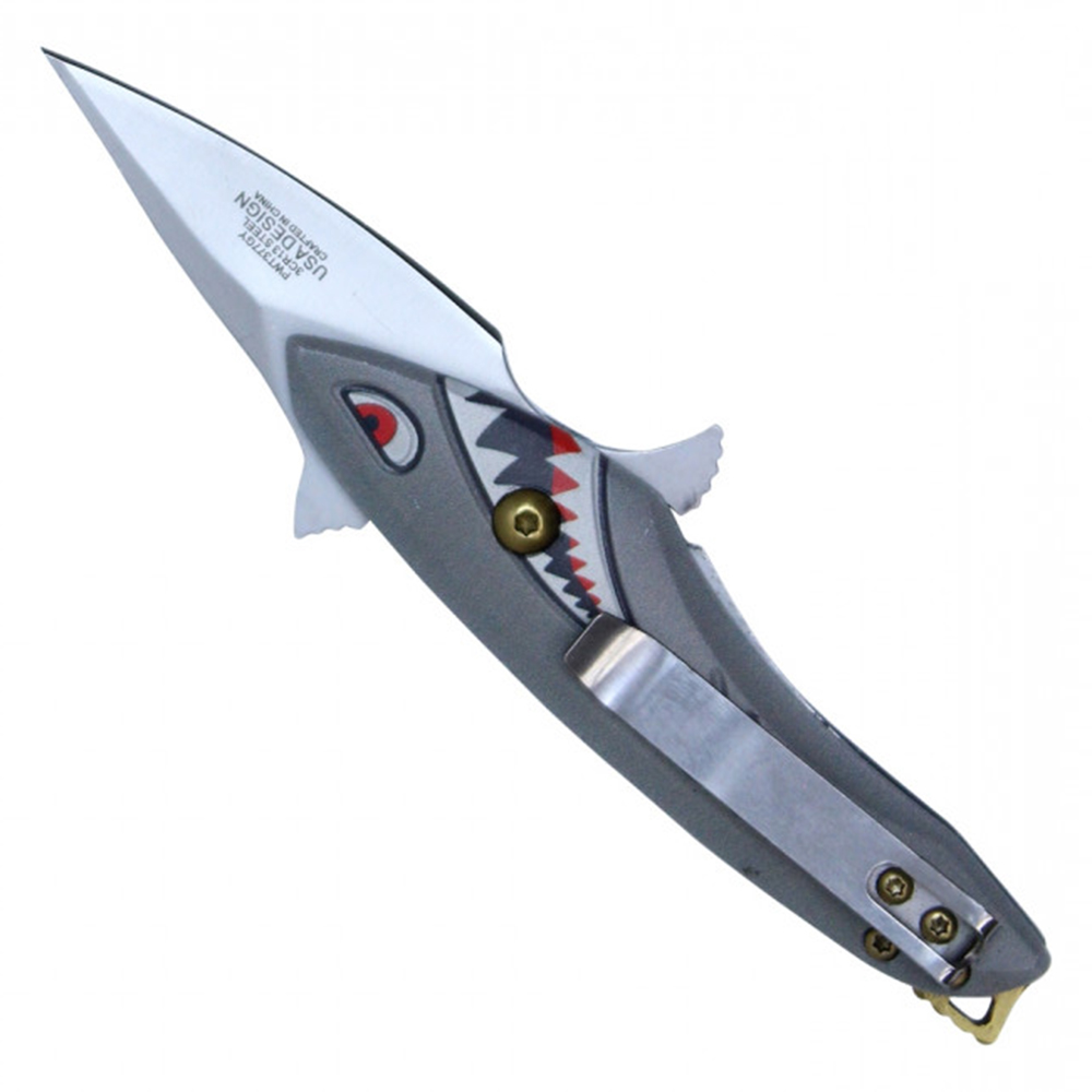 The Wartech Shark Tactical Folding Knife is a compact yet fierce EDC tool, featuring a unique 3D shark design on the handle. This spring-assisted knife offers quick deployment, making it a reliable companion for everyday use. With a 1.5" chrome-finished 3CR13 stainless steel blade, it delivers durability, corrosion resistance, and sharp performance. The 4" aluminum handle provides a lightweight yet sturdy grip, ensuring control and comfort.