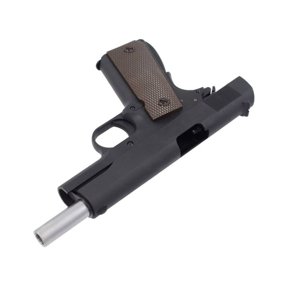 This pistol is incredibly accurate, and it could easily hit a man-sized target at 50 Metres with absolutely no problems at all, the shot grouping is very good and the general consistency of firepower is also very good for the price and size of the pistol.