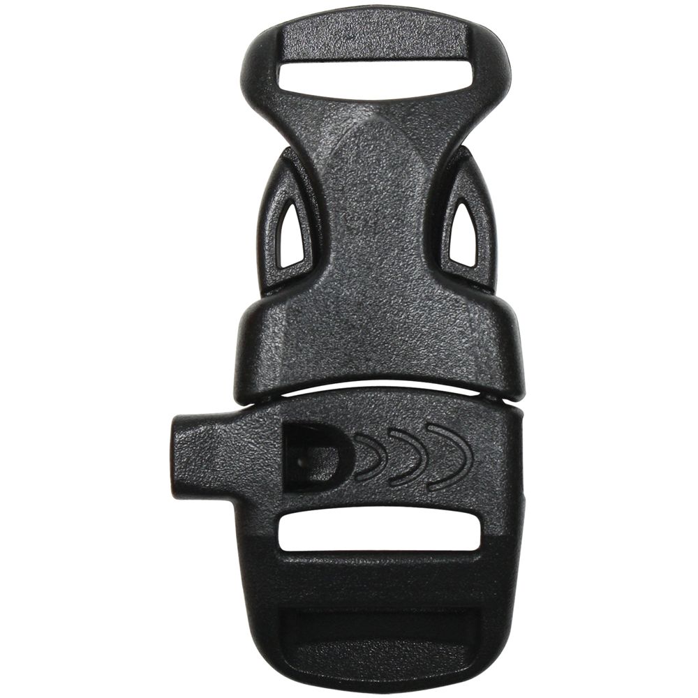 The Black Whistle Buckle from Ultra force is a rather sturdy side-release buckle for securing a whistle with ease. The 5/8 inch buckle comes in black color and is highly useful to connect whistle webbing to it. Once this is done, the side release mechanism allows you to open and close the buckle with ease by pressing two sides of the buckle. This allows the mechanism to unlock the buckle which results in the buckle opening up. The Black Whistle Buckle makes it rather easy to fasten and remove any whistle without the inconvenience of tying and untying knots in the webbing.