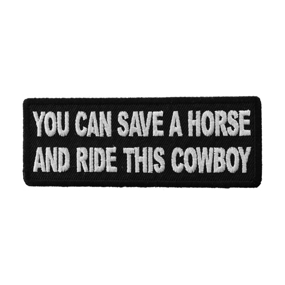 Showcase your love for Western culture with this eye-catching patch. Measuring 4x1.5 inches, it features bold black and white embroidery that delivers a playful message. Perfect for adding a touch of personality to your denim jackets, leather vests, hats, and more, this patch easily adheres with either sewing or ironing methods.