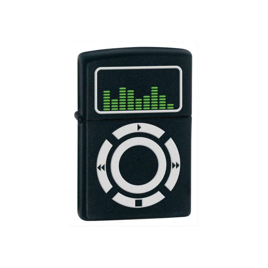 A music/film theme Zippo Lighter with MSC Music Black Matte finish and design. This model has the following design elements: General Music Designs, Standard Size case, Black in colour. This Zippo features a Powdercoat Matte Black finish. This lighter is f